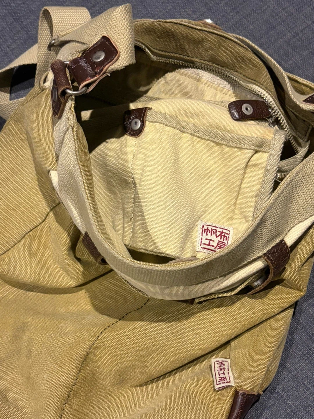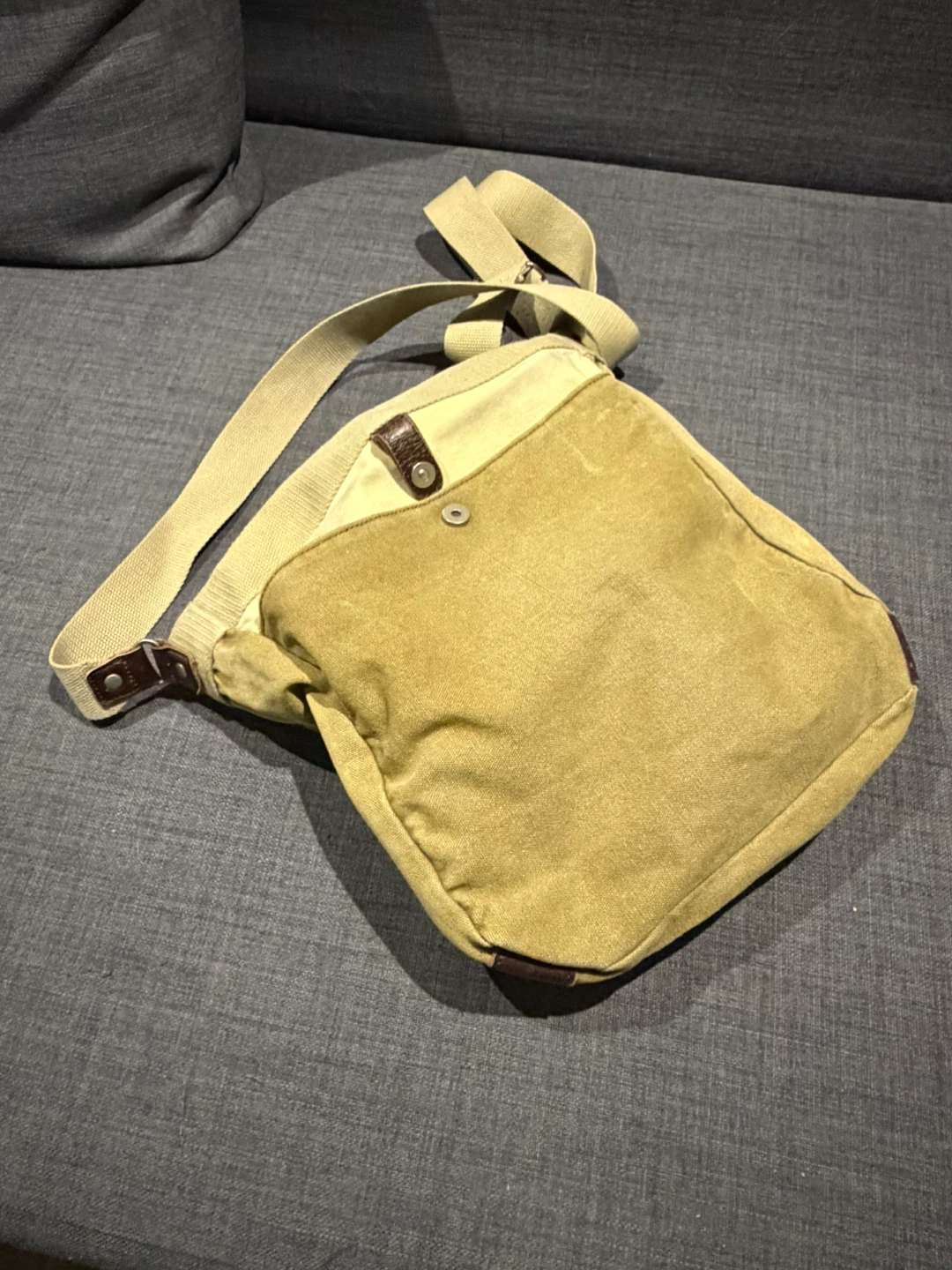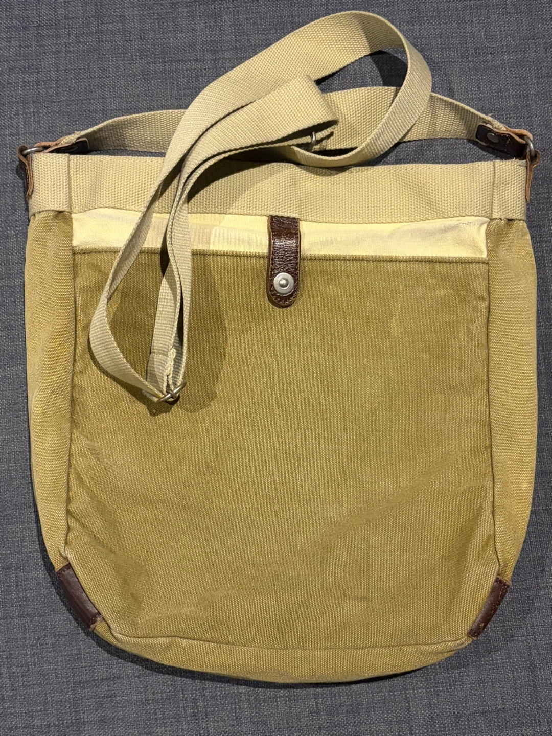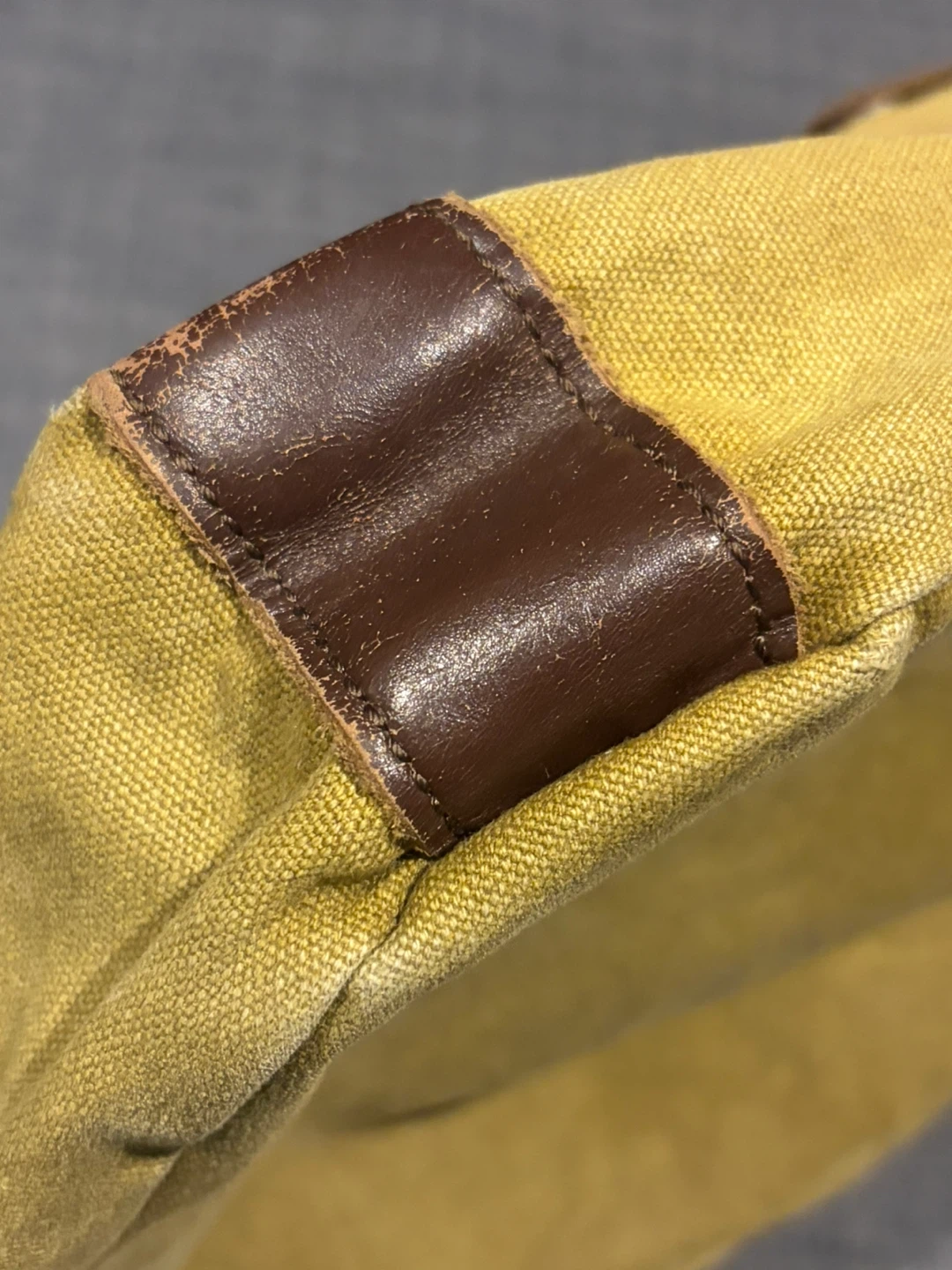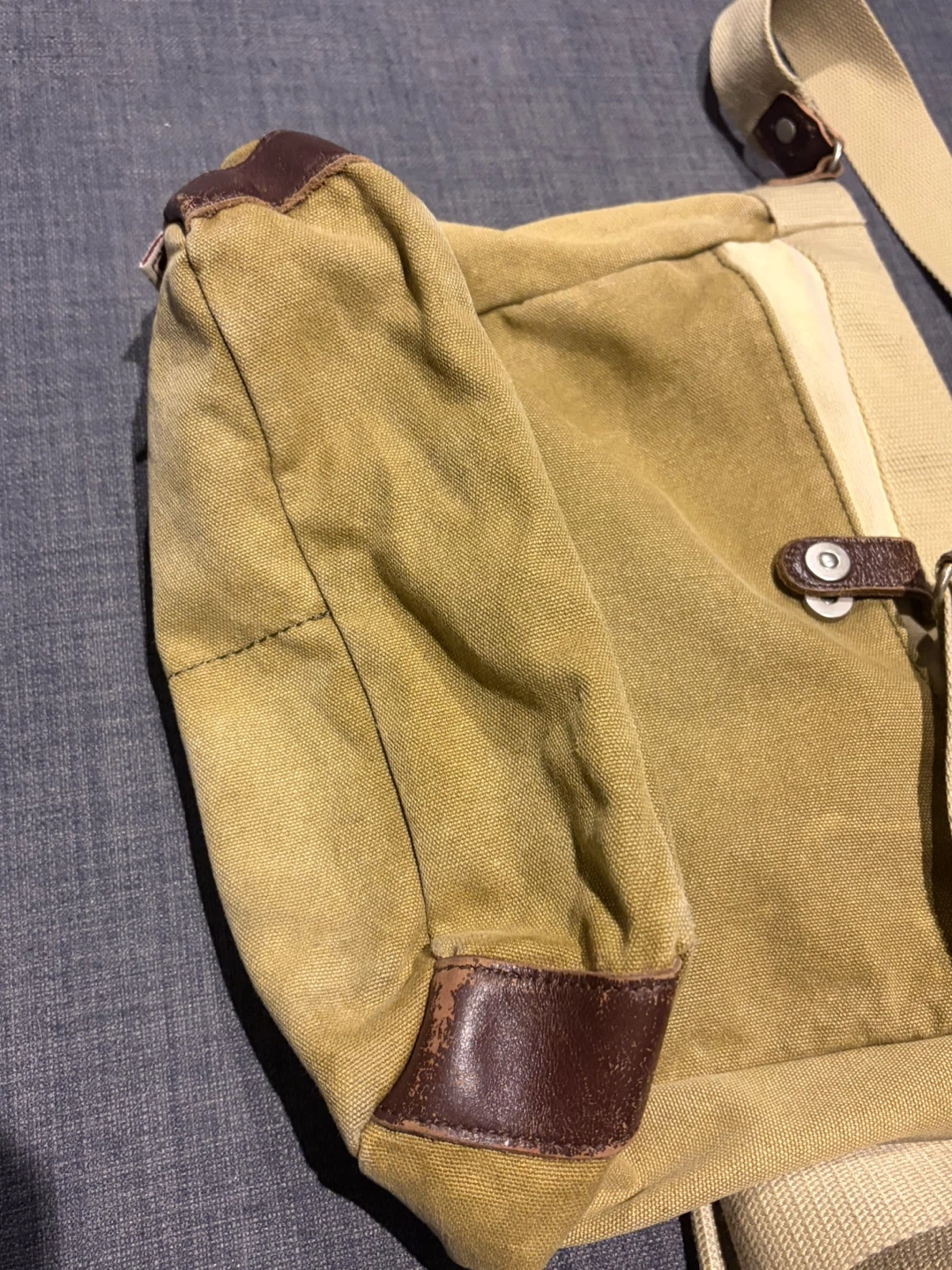 Used for 3 years. Minor leather wears on the edges and canvas color fades.