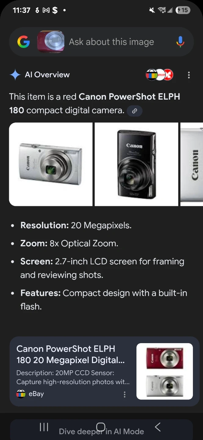 Buy & SellCanon elphCanon elph$320Like new camera, was babied. Comes with battery, the charger and used padded carrying case. Specs can be seen in pictureWHERE TO MEETCheck LocationView MapSELLERverifiedCarmelWexford12416 reviews1 chats·2 favorites·23 viewsSEND CHAT TO SELLERHi Carmel! I’m interested in your listing.Hi Carmel! I’m interested in your listing.Get the Karrot app to chatSign In to chat