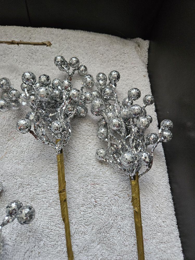 Silver Glitter Berry Stems - Holiday Decor