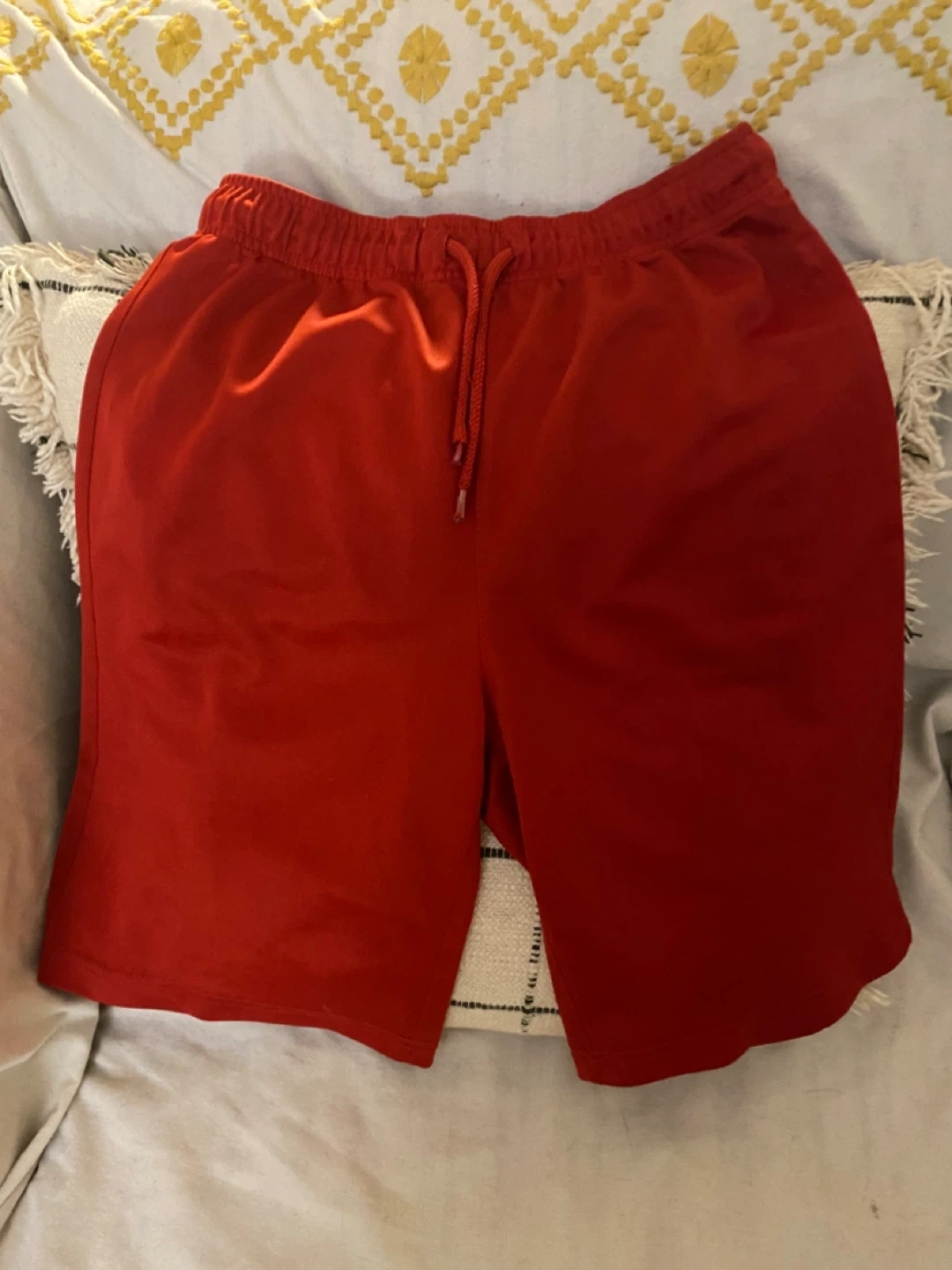 These Place Sport athletic shorts are a vibrant red colour. They're a size XL with an elastic waistband and a drawstring for a comfortable fit. Perfect for sports or casual wear!