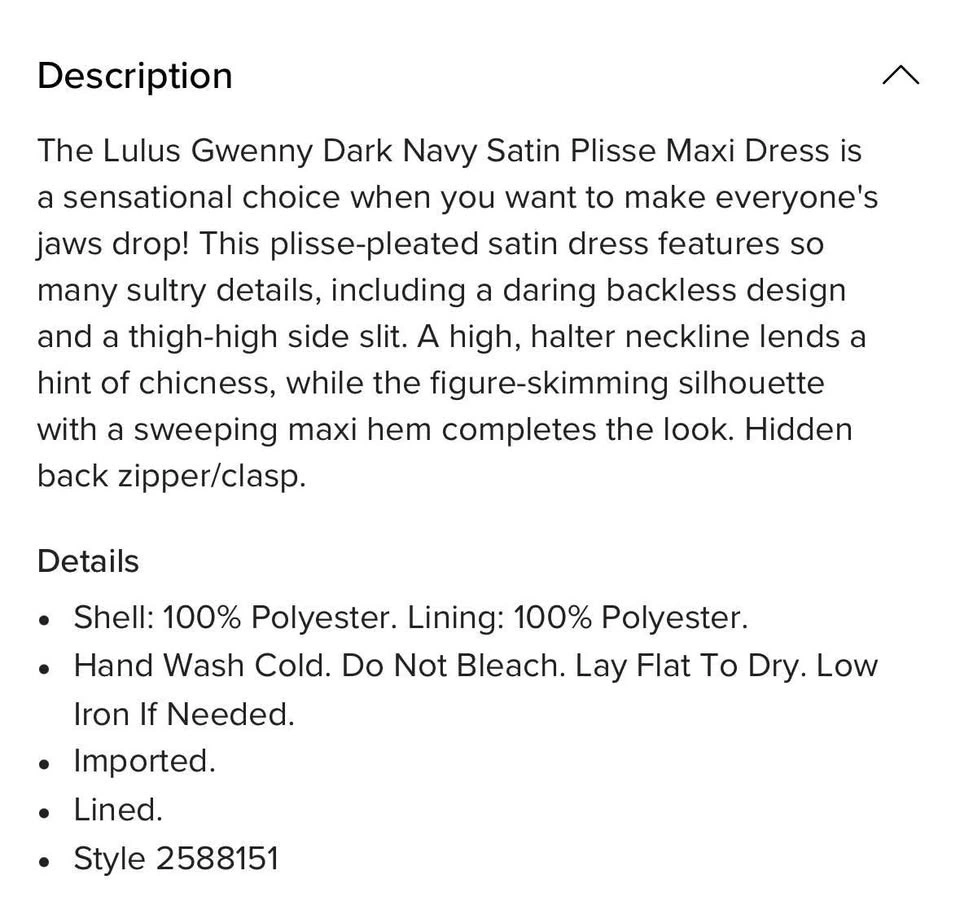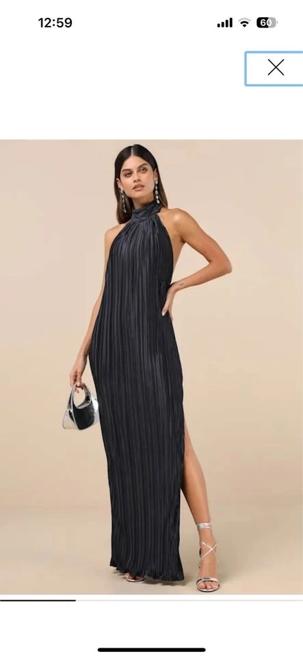 XS Lulus Gwenny Dark Navy Satin Plisse Maxi Dress
