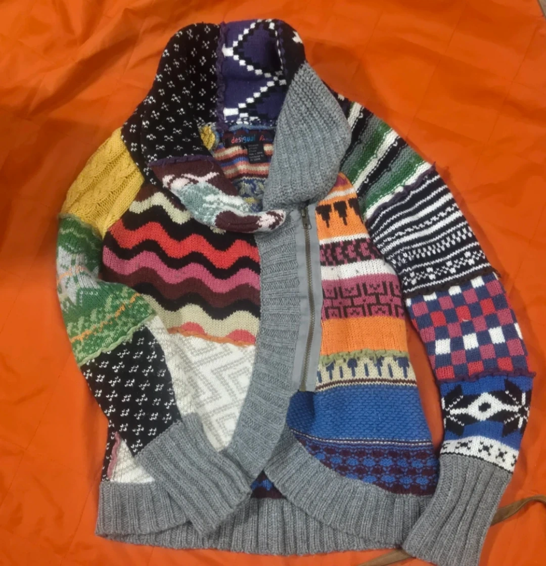 Desigual Rainbow Patchwork Cardigan Sweater Size L