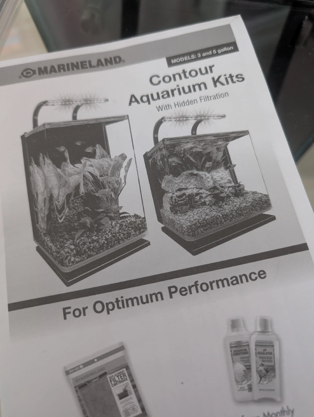 Selling a Marineland Contour Aquarium Kit, suitable for 3 to 5-gallon setups! It includes a variety of accessories to get you started such as: