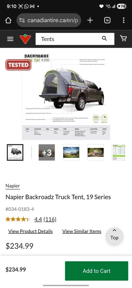 Napier Backroadz Truck Tent - Full Size Short Bed