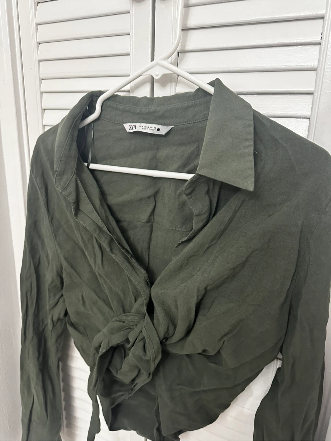 ZARA Olive Green Knot Front Blouse