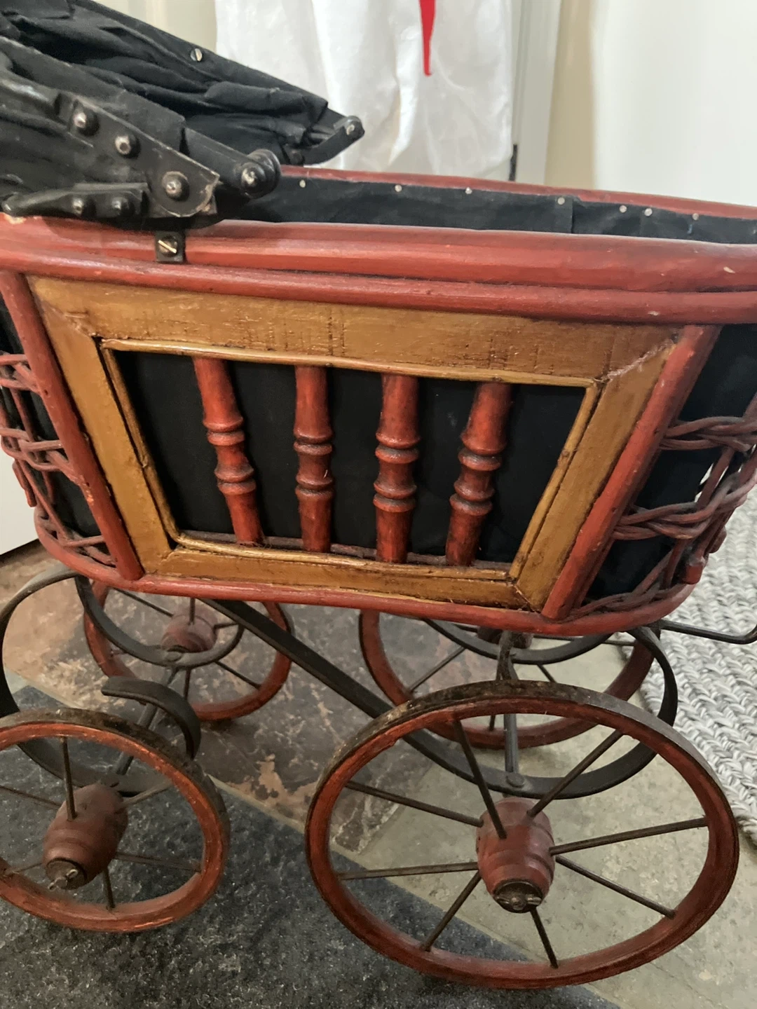 Antique doll stroller, suitable for displaying vintage dolls/toys.