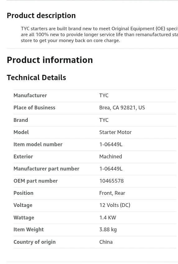 Buy & SellTYC 1-06449L Starter Motor 12 VoltsTYC 1-06449L Starter Motor 12 Volts$120Brand new TYC starter motor. Model 1-06449L. 12 Volts (DC) with 1.4 KW wattage. Machined exterior finish.ConditionNewWHERE TO MEETpentland St.View MapSELLERMiles MckeenCentennial150 reviews0 chats·0 favorites·3 viewsSEND CHAT TO SELLERHi Miles Mckeen! I’m interested in your listing.Hi Miles Mckeen! I’m interested in your listing.Get the Karrot app to chatSign In to chat