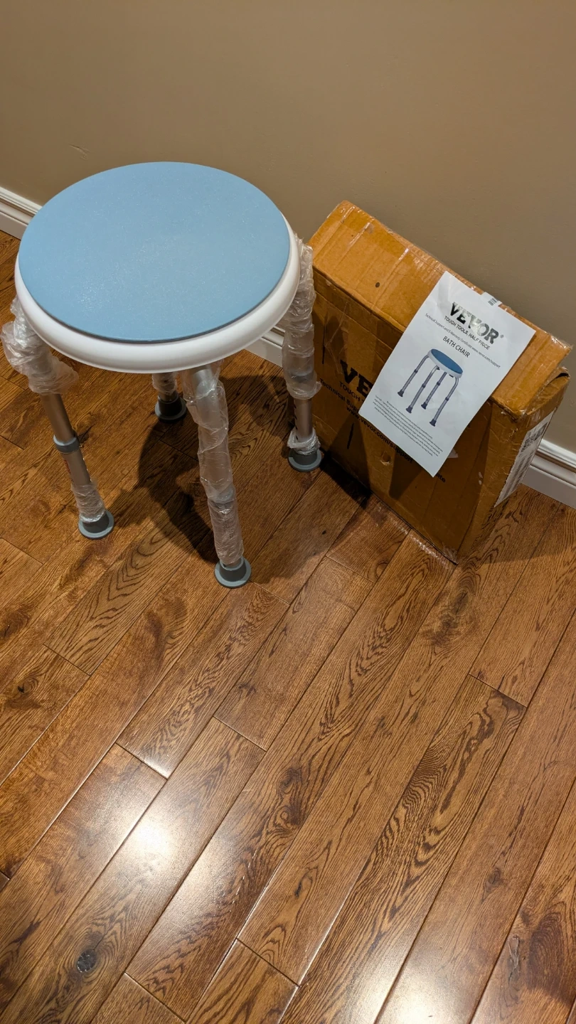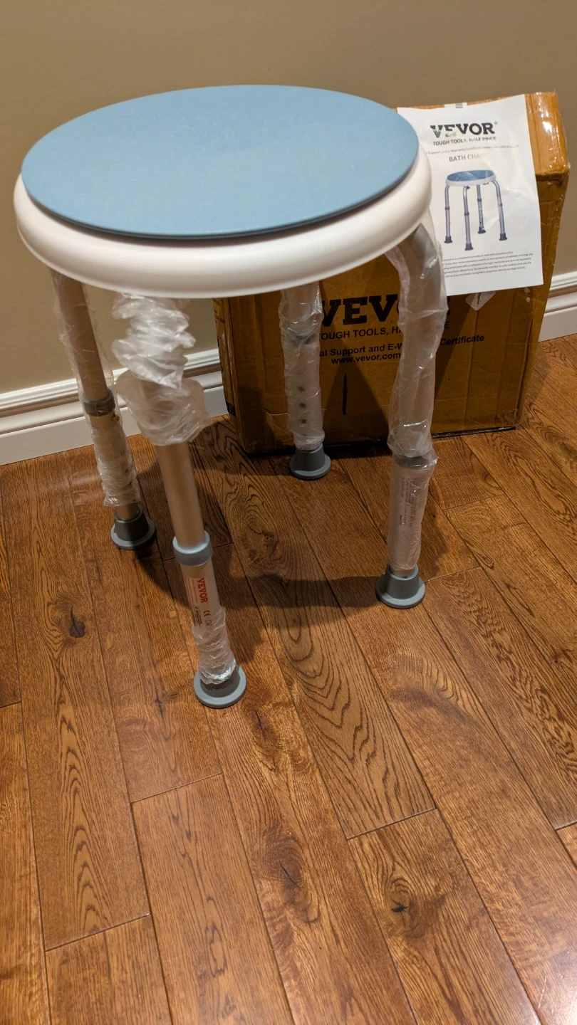 Brand new bath/shower chair with 360° swivel top. Turn around with ease to reposition yourself or reach for something. 6 height adjustments. 300lb weight limit. Just taken out of box and assembled for pictures.