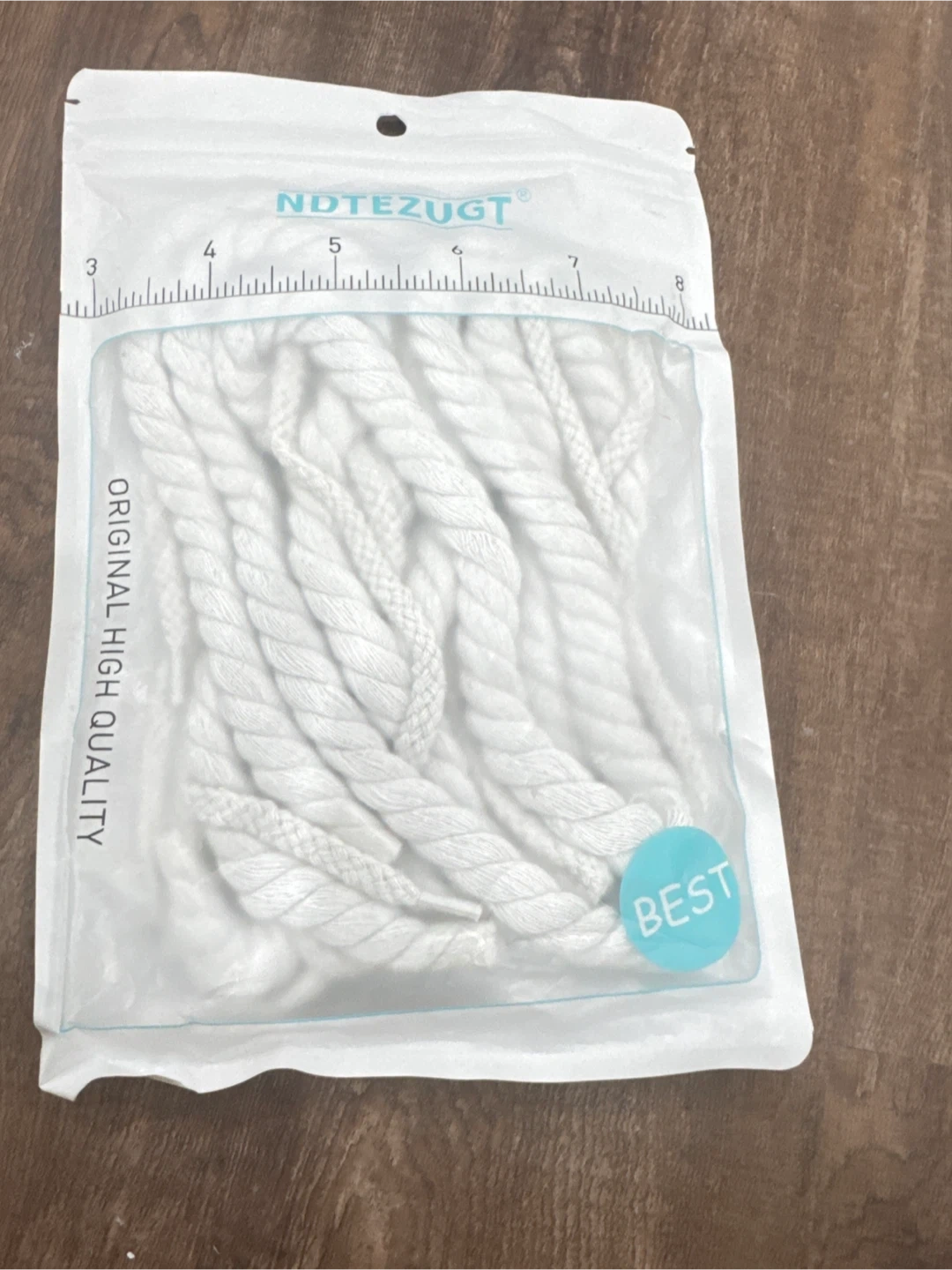 These are thick, braided rope shoelaces by NDTEZUGT. They come in white with two black and white aglets. They're great for customizing sneakers or replacing worn-out laces!