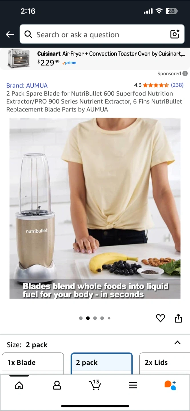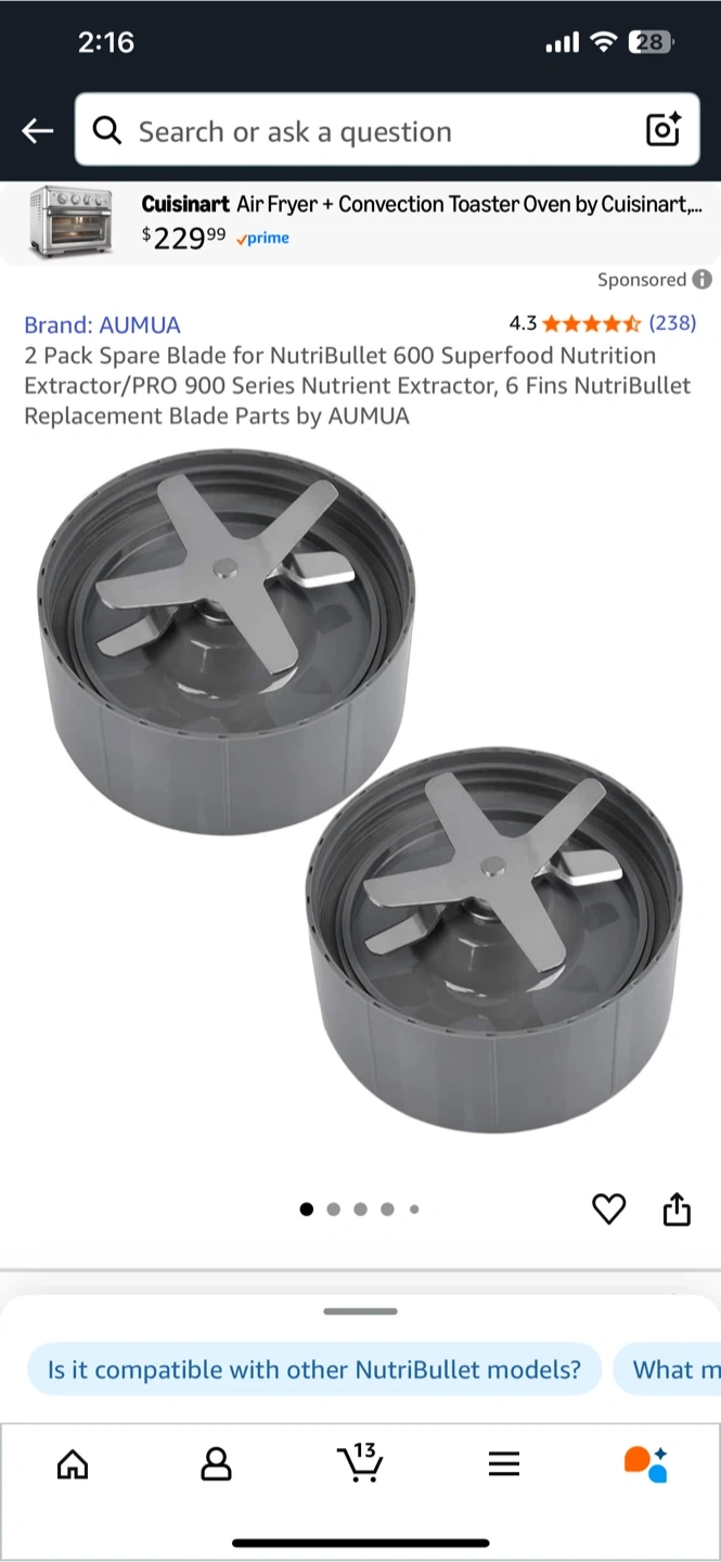 Selling a 2-pack of spare blades for NutriBullet 600 and 900 series blenders. These are replacement blades by AUMUA, featuring a 6-fin design for efficient nutrient extraction. They measure approximately 4 inches in diameter and 1.7 inches in height.