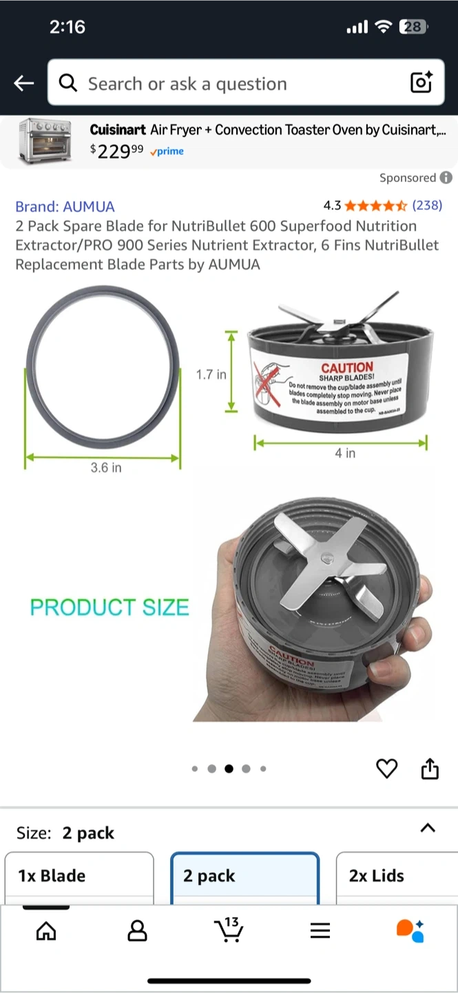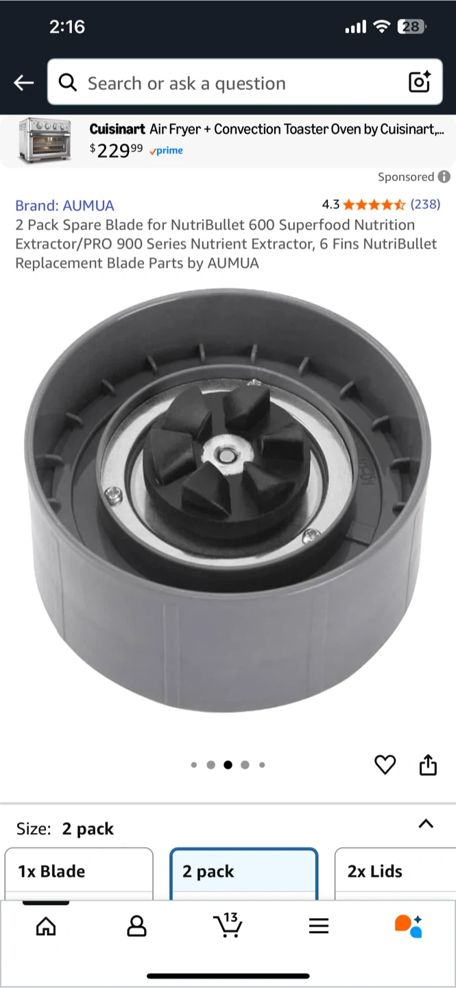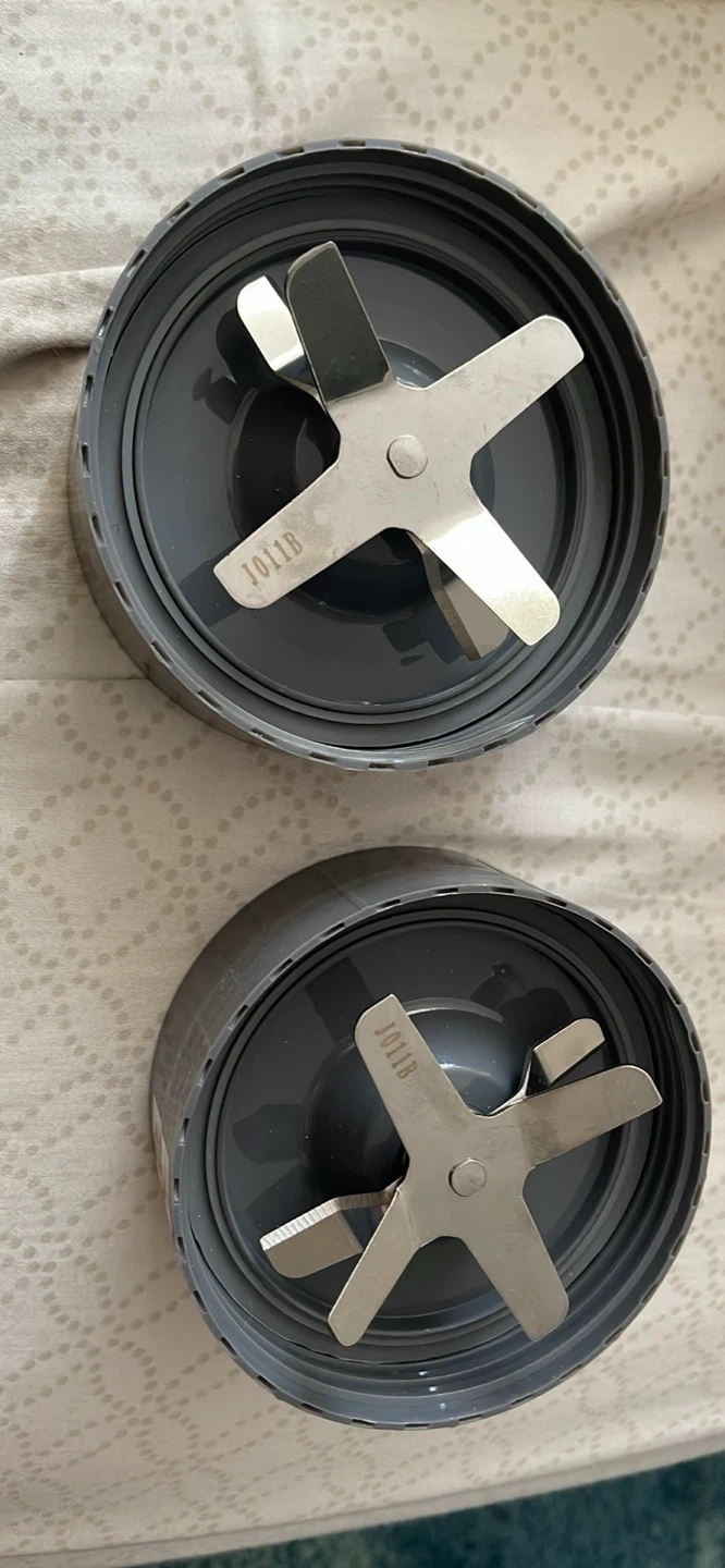 Selling a 2-pack of spare blades for NutriBullet 600 and 900 series blenders. These are replacement blades by AUMUA, featuring a 6-fin design for efficient nutrient extraction. They measure approximately 4 inches in diameter and 1.7 inches in height.
