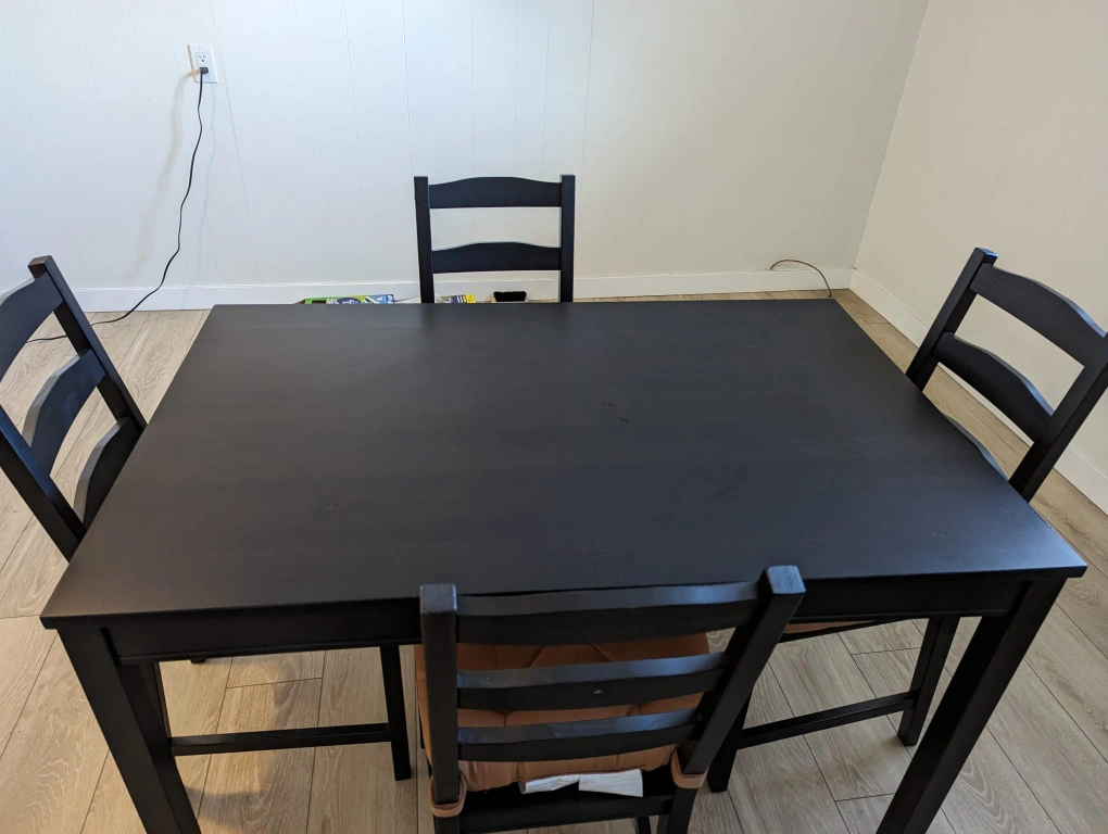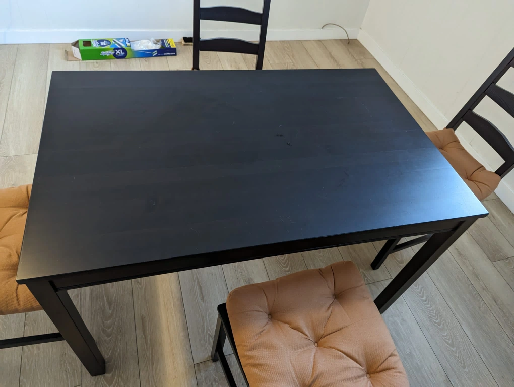 Dear friends. The table and chairs are bought from Ikea. I am sorry that the buyer needs to arrange his or her transport after the sale since we don't have any transportation by ourselves.
