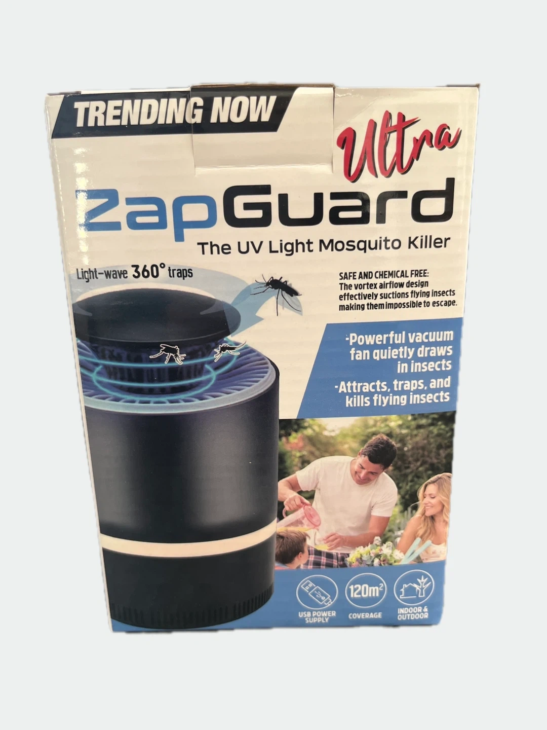 This ZapGuard Ultra is a UV light mosquito killer. It uses a vortex airflow design to draw in and trap insects. It's safe and chemical-free for use indoors or outdoors, covering up to 120m².