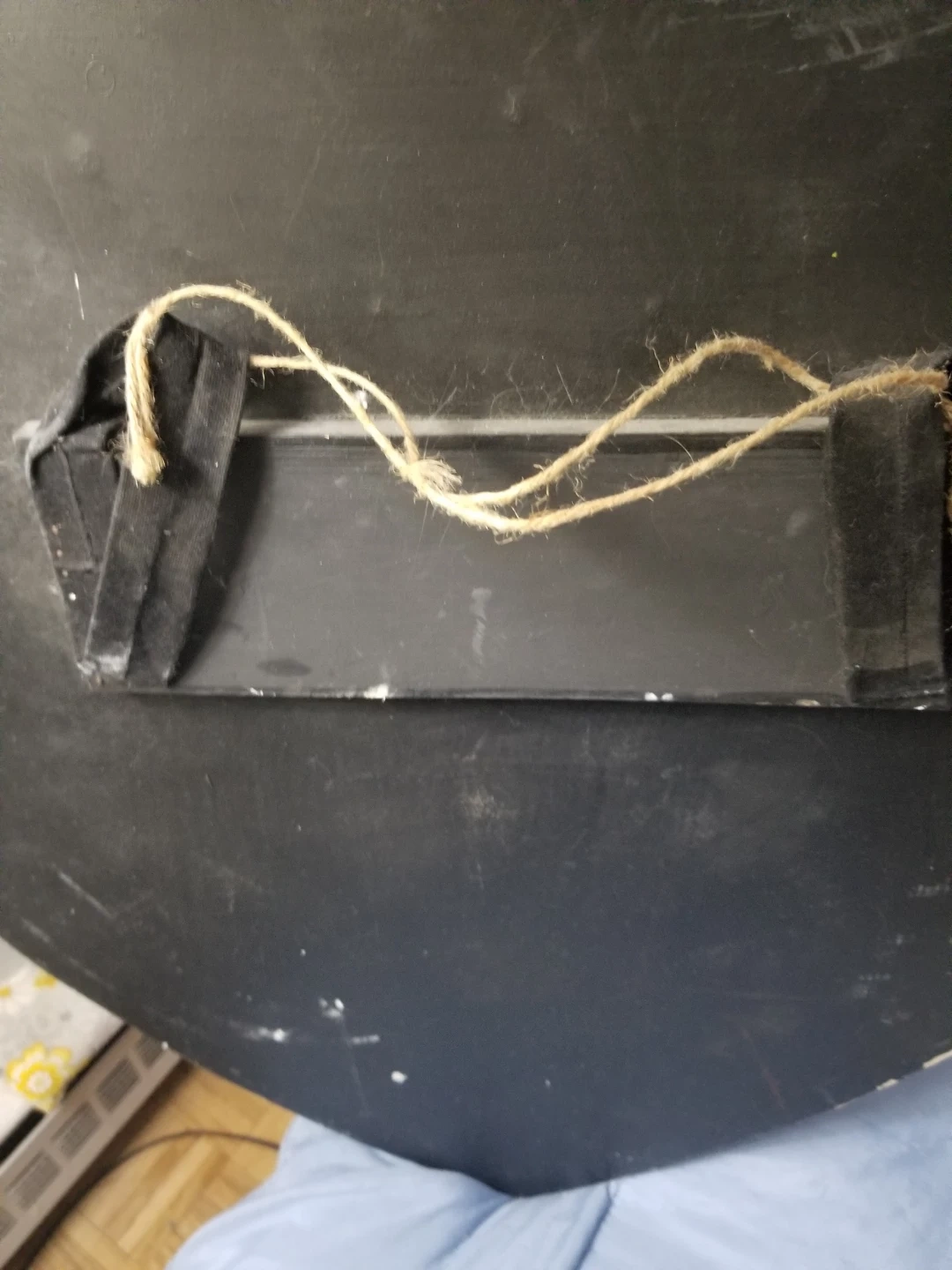 This is a decorative shield with a black background and a white cross emblem. It has two fleur-de-lis symbols on the sides. Straps on the back for display. Likely made from foam or plastic with a painted finish.