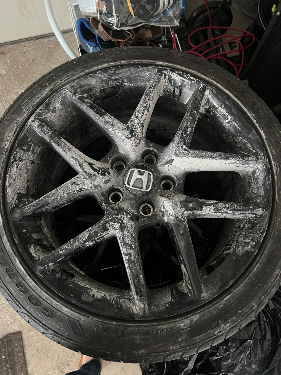 Selling winter tire four Honda alloy wheel with a tire. It's a 17-inch wheel. The tire is a Goodyear Eagle Sport.It's off a Honda Civic.