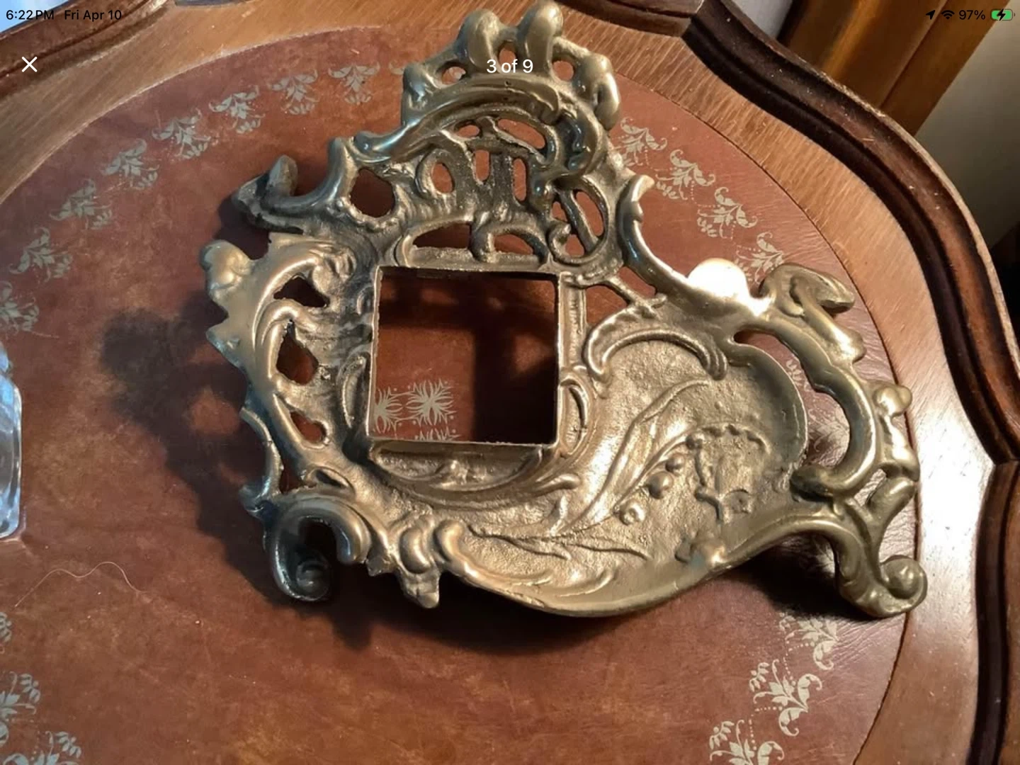 The brass tray is approximately 7” wide, 5.5” deep and 3” tall.