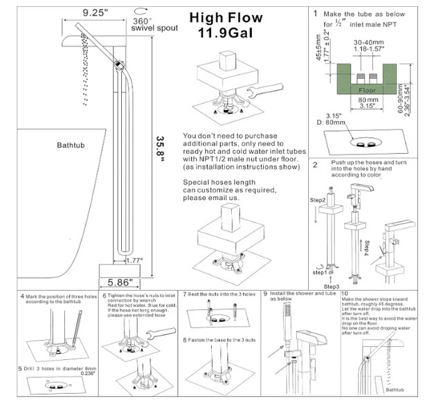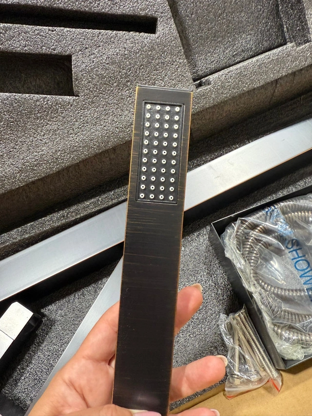 Freestanding Bathtub Faucet – Oil-Rubbed Bronze | Waterfall with Handheld Shower. Final sale – no returns, no warranty. Check and test on pickup. Luxurious waterfall-style freestanding tub filler in a beautiful oil-rubbed bronze finish. Floor-mounted with a high 11.9GAL flow rate for quick filling. Includes handheld shower for added flexibility.