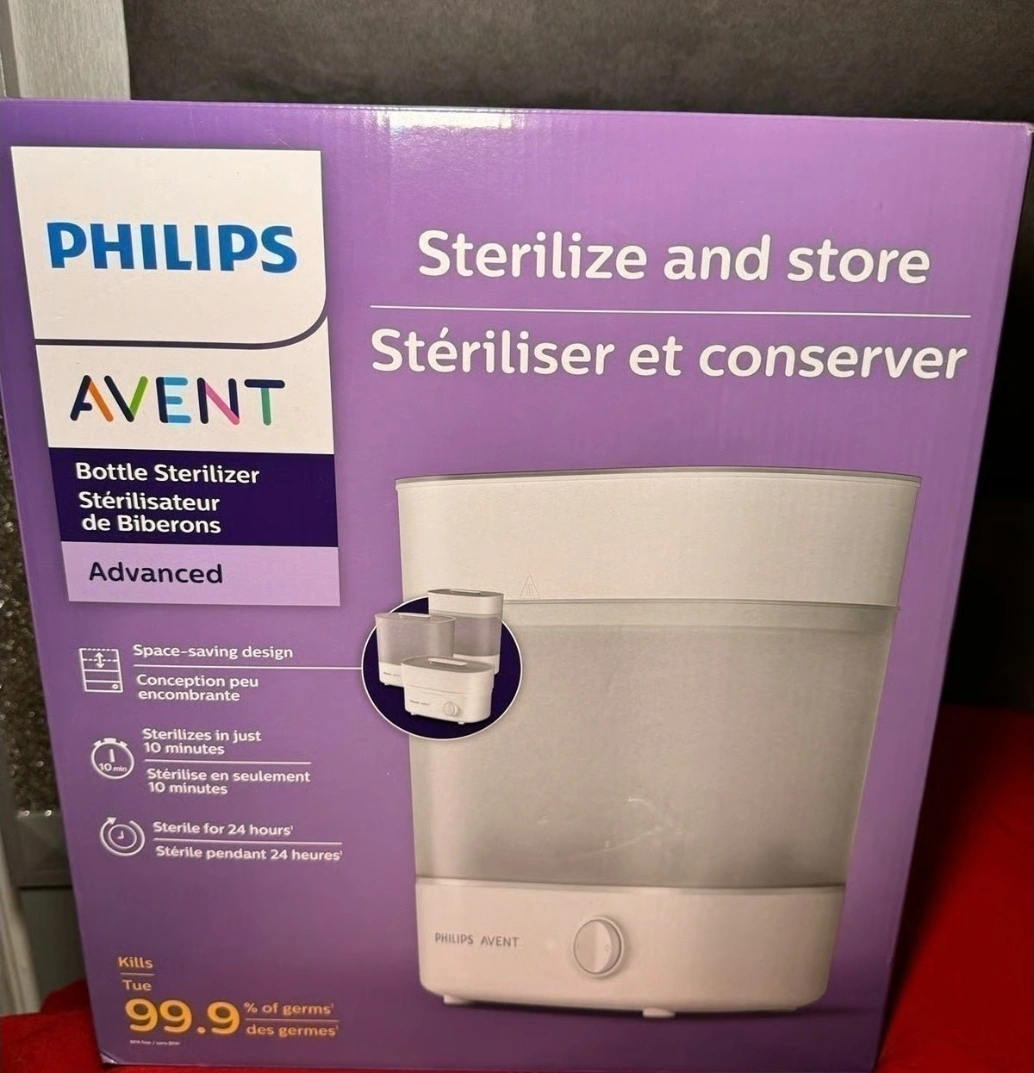 Selling a Philips Avent bottle sterilizer. It's new and ready to keep your baby's bottles clean and safe. It sterilizes and dries, and is ready within 40 minutes.