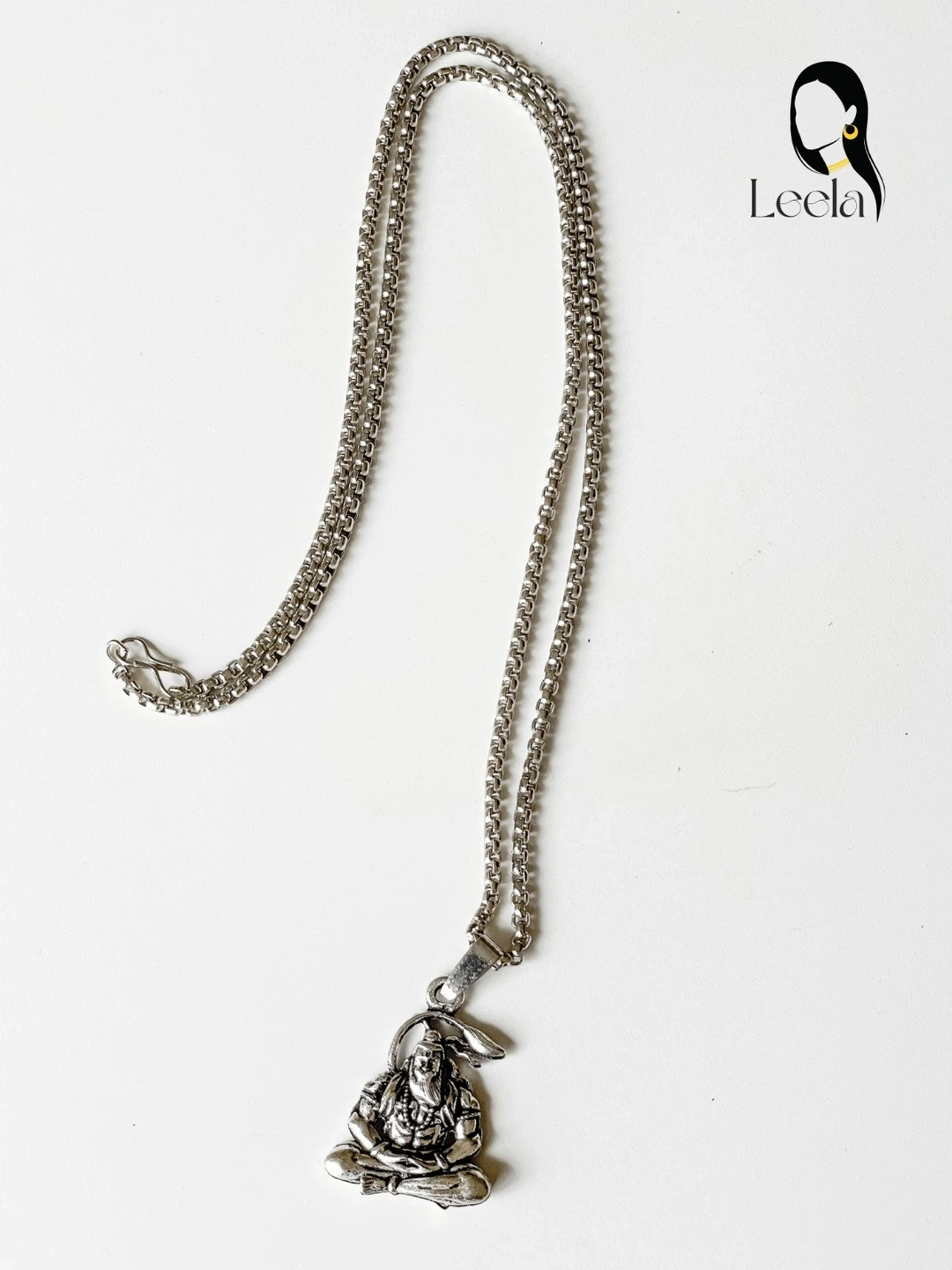 Here's a Leela necklace featuring a silver-tone chain and a pendant of Shiva. It's a lovely piece to add to your collection!