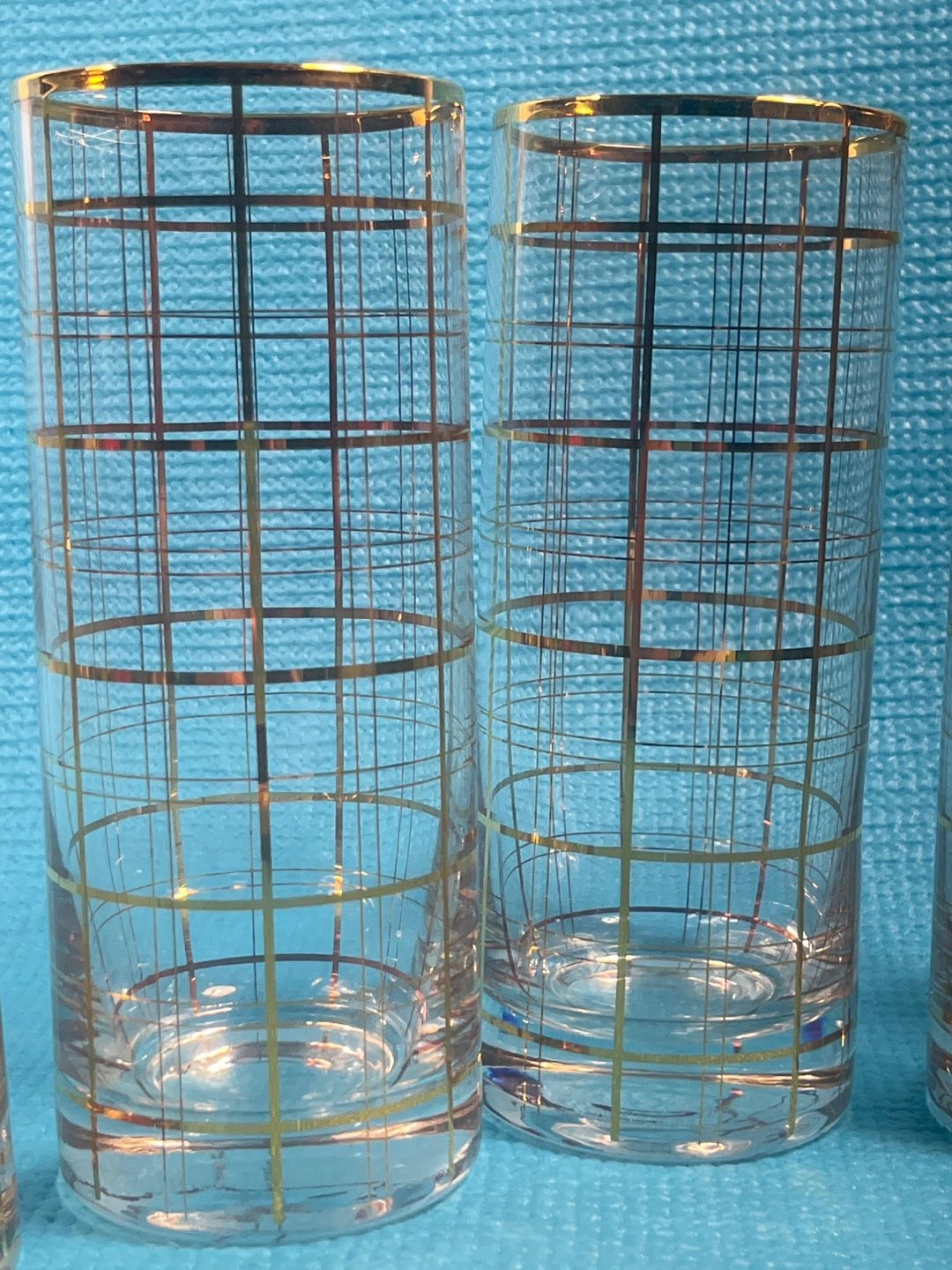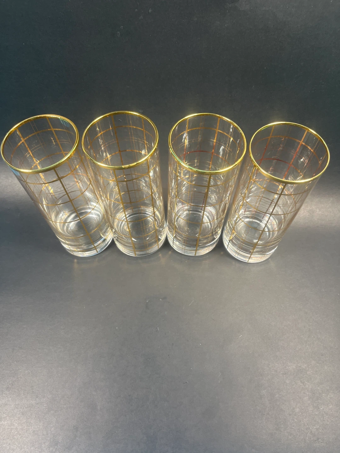 ✨ Vintage MCM 22k Gold "Windowpane" Highball Glasses – Set of 4