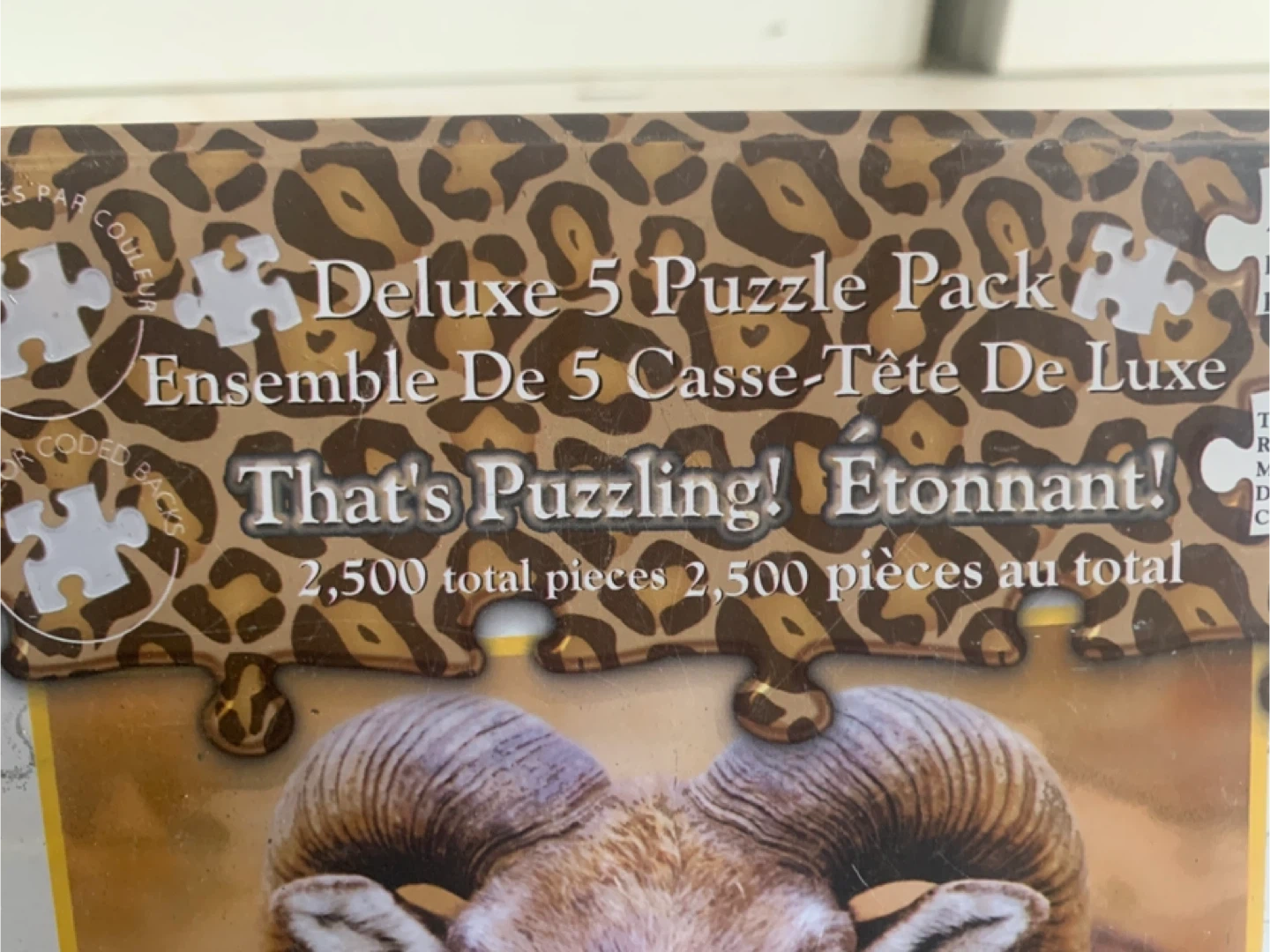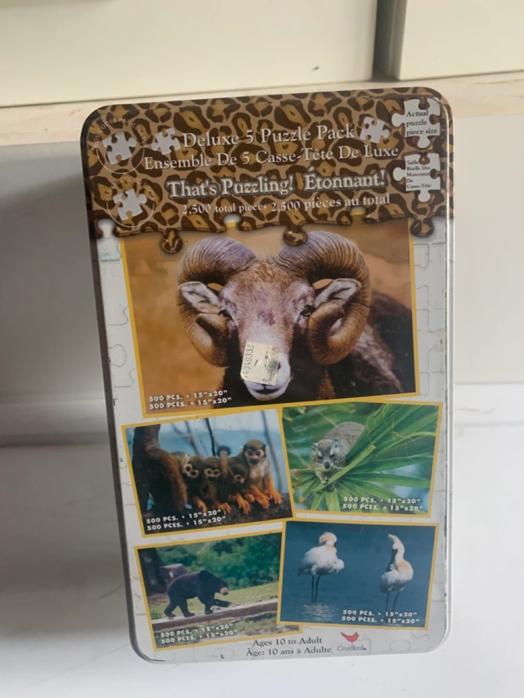 Selling a deluxe puzzle pack with 5 puzzles inside! Each puzzle is 500 pieces and measures 15" x 20". That's puzzling! Ages 10 to Adult