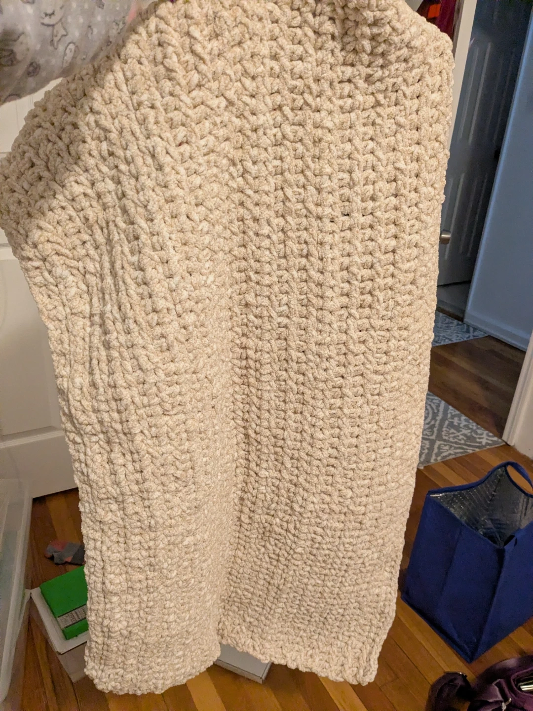 Selling a super soft and cozy Crocheted blanket. Made with baby soft yarn and pre washed with a scalloped edge. It can fit over a stroller, or used as a crib blanket. It can even be wrapped around the baby. It's very large, I kinda got carried away. It's crocheted design prevents suffocation during sleeping. I made it for a friend's baby, but I lost contact with them. Made in a smoke free home. Please contact me if you're in need of a baby blanket and have trouble affording one. I really want to give it to someone who needs it.