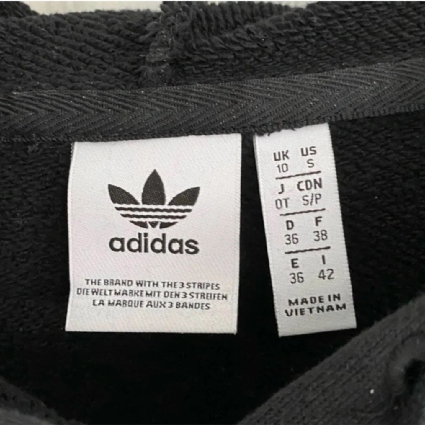 Selling an Adidas black cropped hoodie with the classic three stripes down the sleeves. It's a size small and in great condition. Perfect for a casual, sporty look!