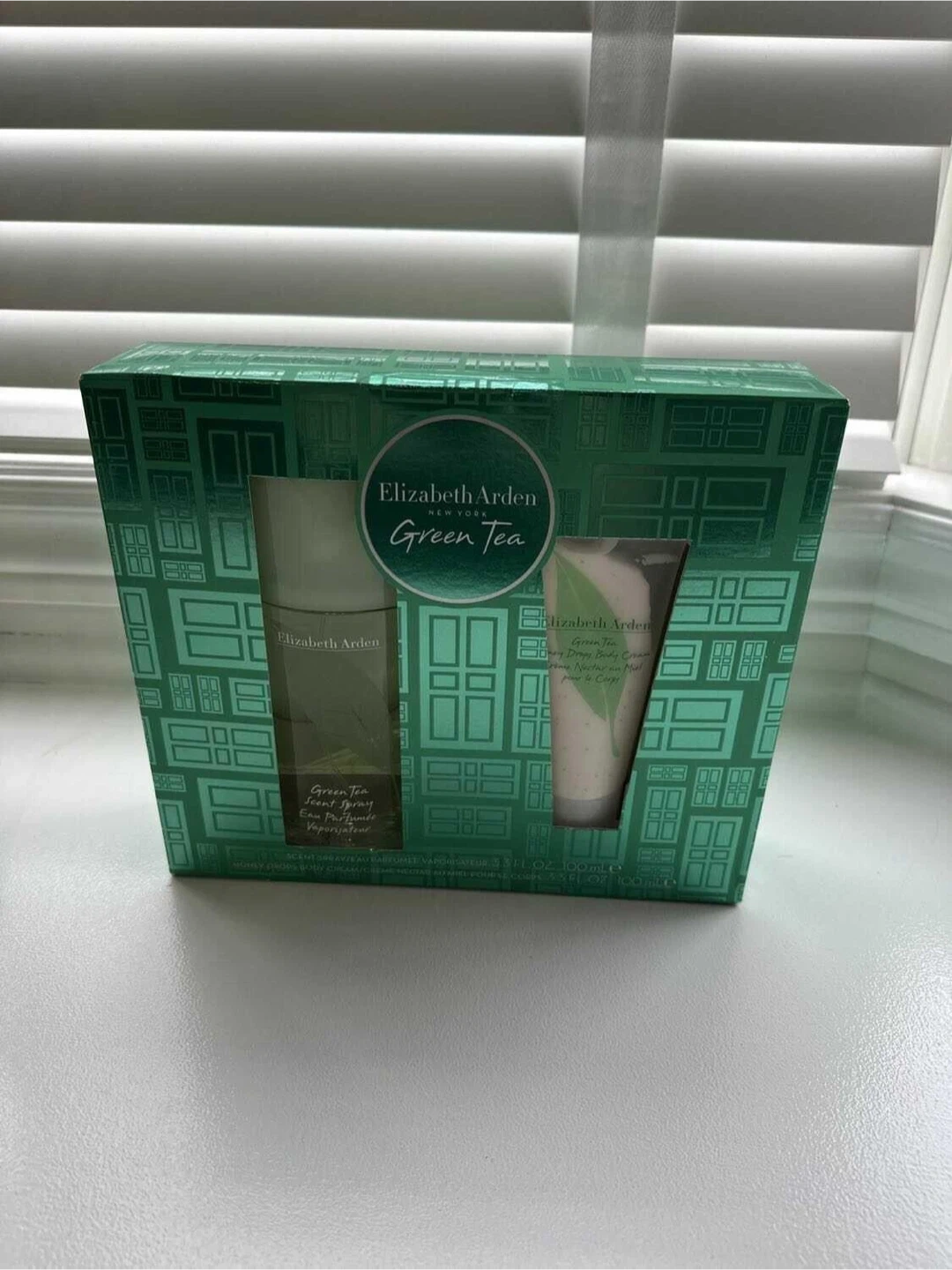 This Elizabeth Arden Green Tea gift set includes a 100ml scent spray and a 100ml creamy body cream. The scent spray is an Eau Parfumée Vaporisateur. It's a lovely set for a refreshing scent experience.