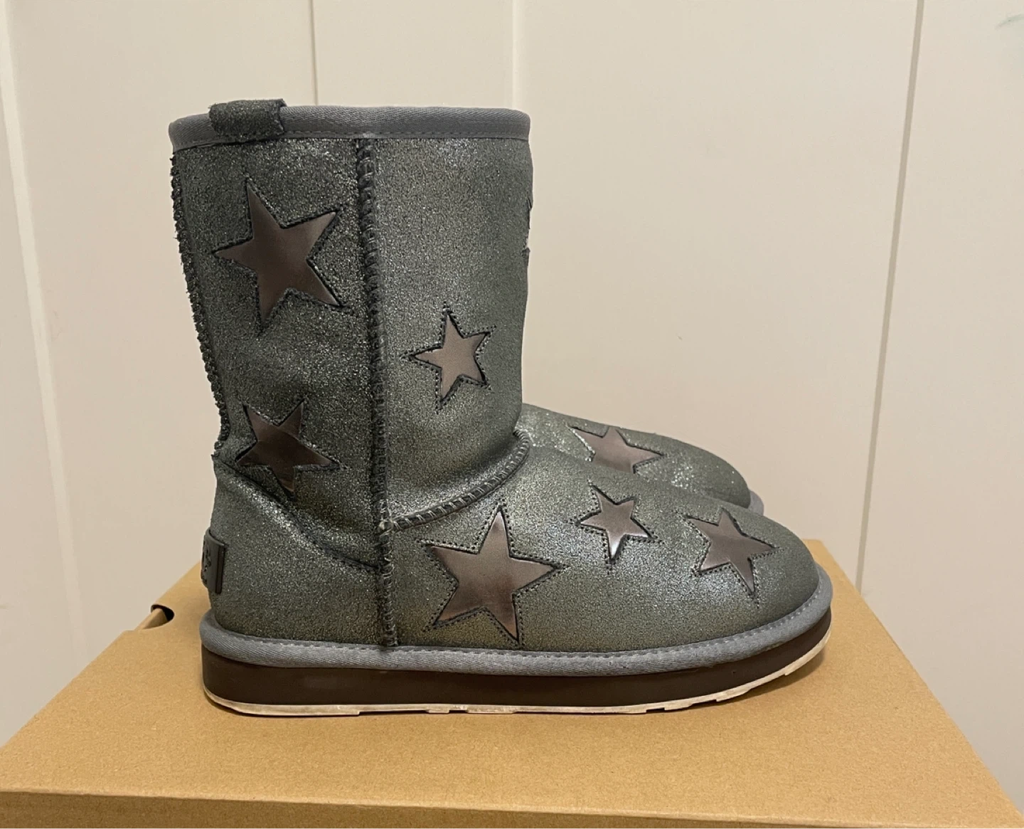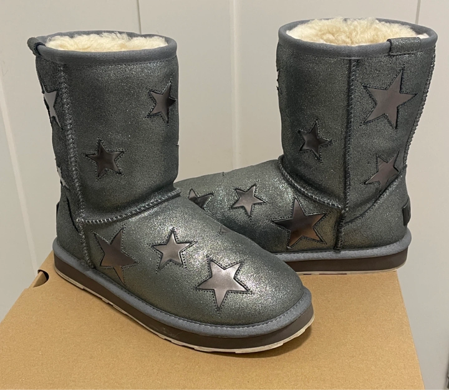 Star-Embellished Silver Gray Shearling UGG (welcome offers)
