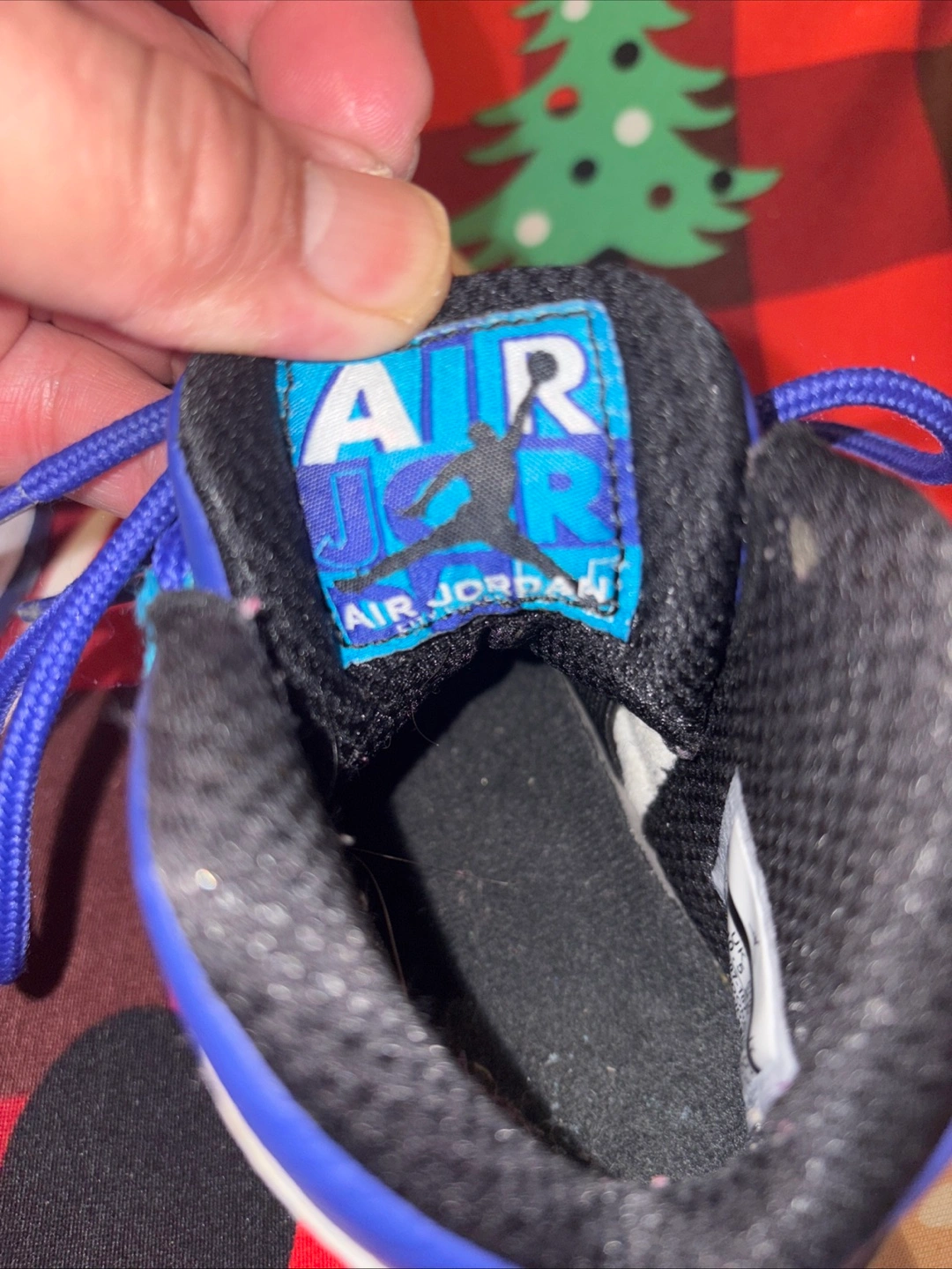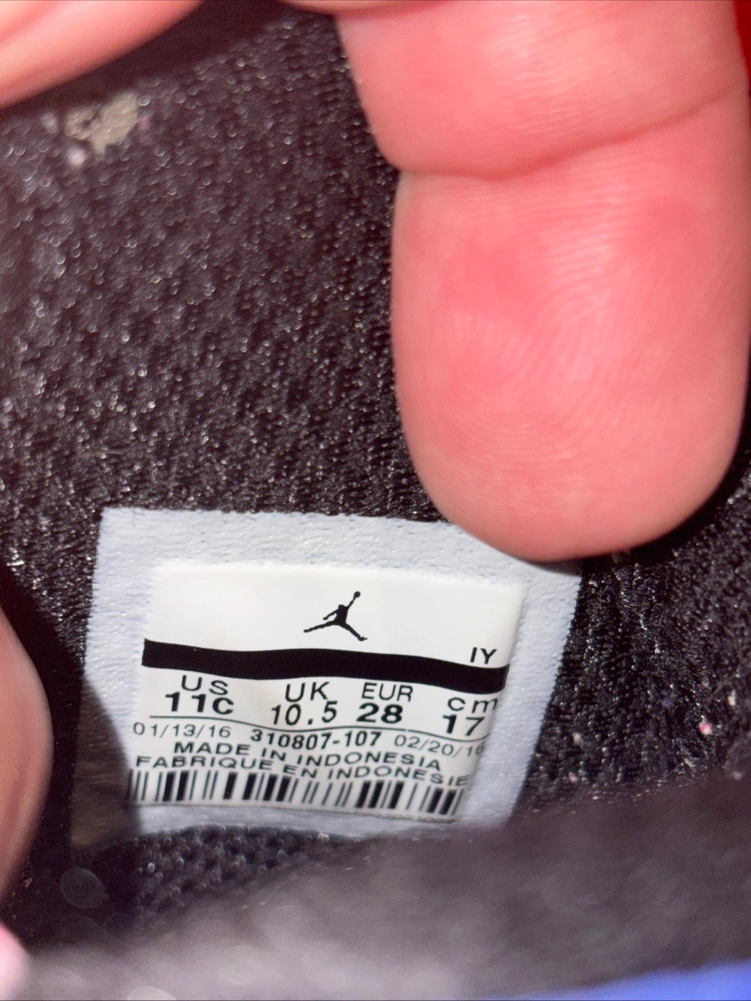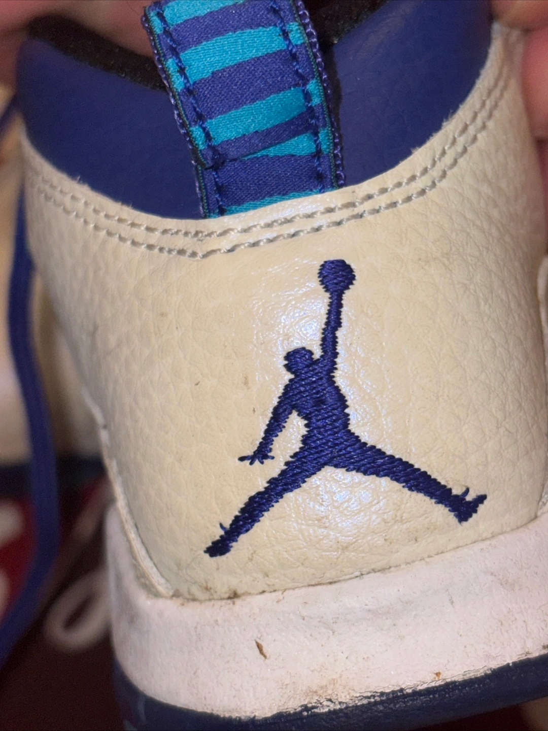 Air Jordan 10 Retro 'Chicago' toddler size. White leather upper with blue and teal accents. Good condition.