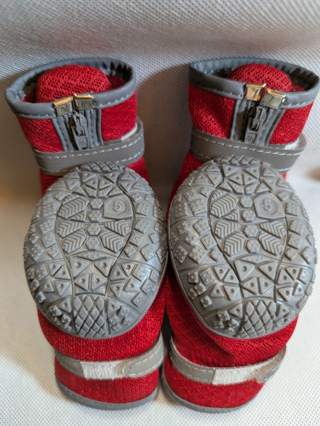 Brand new dog boots, feature a convenient zipper and velcro strap for a secure fit. Size 5, fit size XL. Please see size chart in the last picture (W5cm x L6cm. Recommended weight 28-40lb dogs)