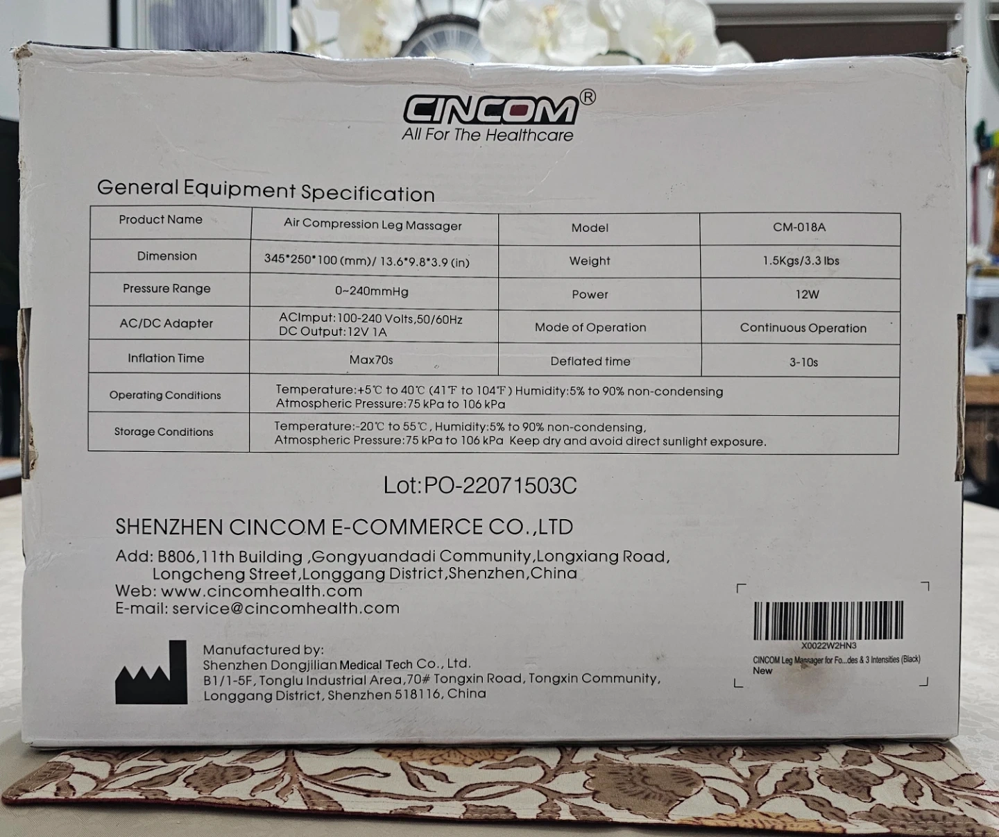 This CINCOM Air Compression Leg Massage offers 2 Modes and 3 Intensities for simulating tissue repair and air bag massage. It's suitable for home healthcare.