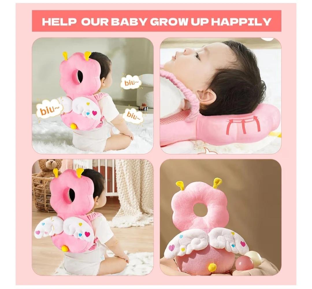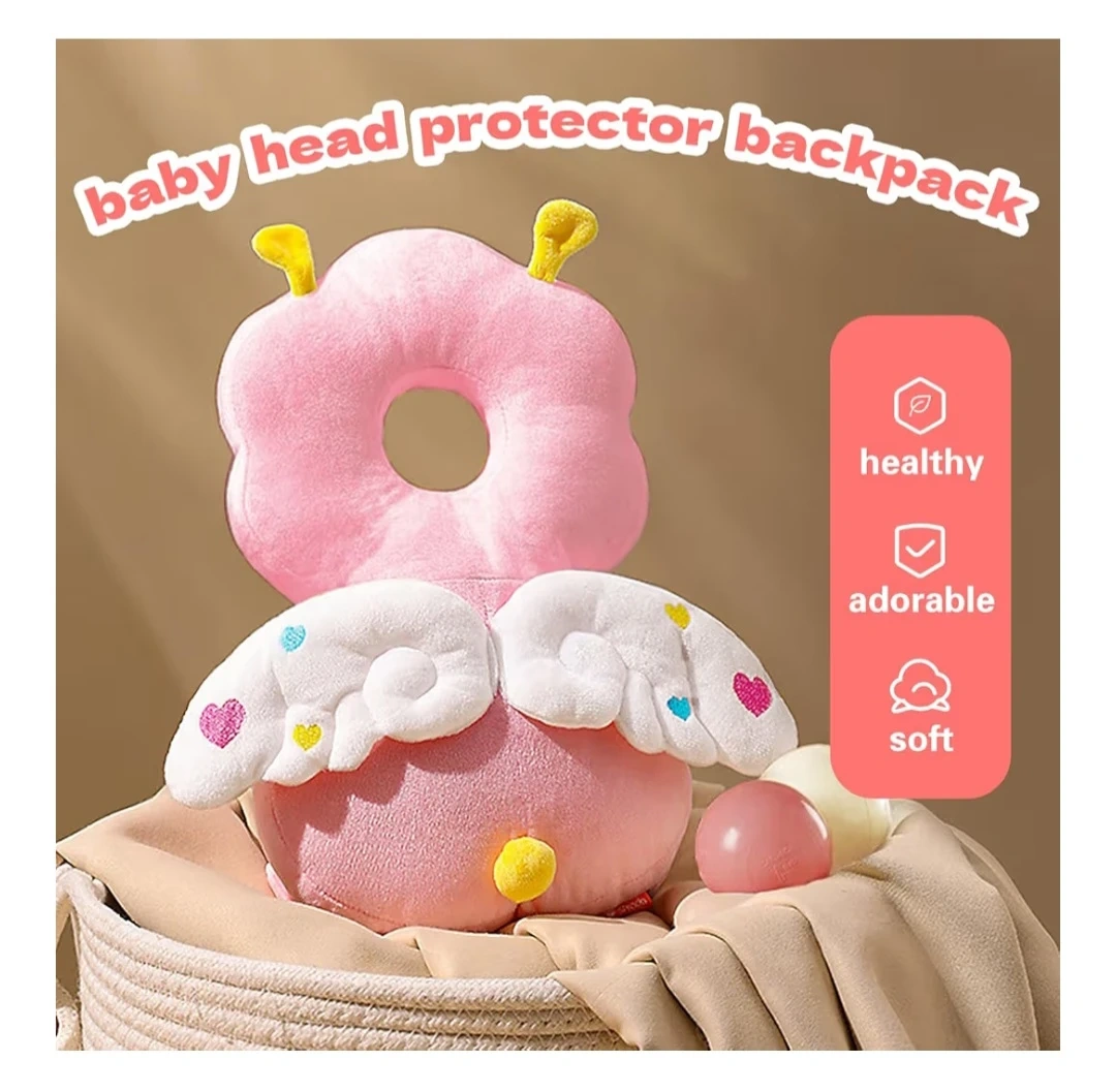 This baby head protector backpack features an adorable cartoon shape with wings and high-elastic PP cotton filling for nice shock absorption. It has an adjustable shoulder and chest strap for a secure fit. O-shaped design.