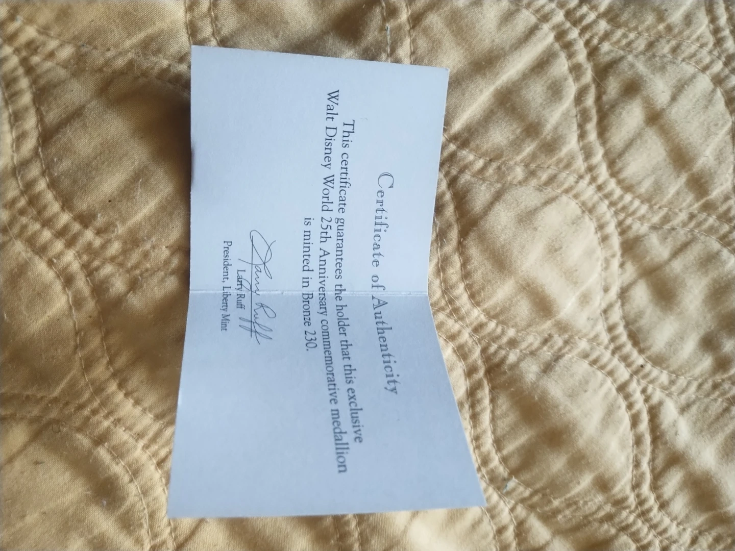 25th Walt Disney World anniversary celebration coin in near mint condition (certificate is a bit bent)