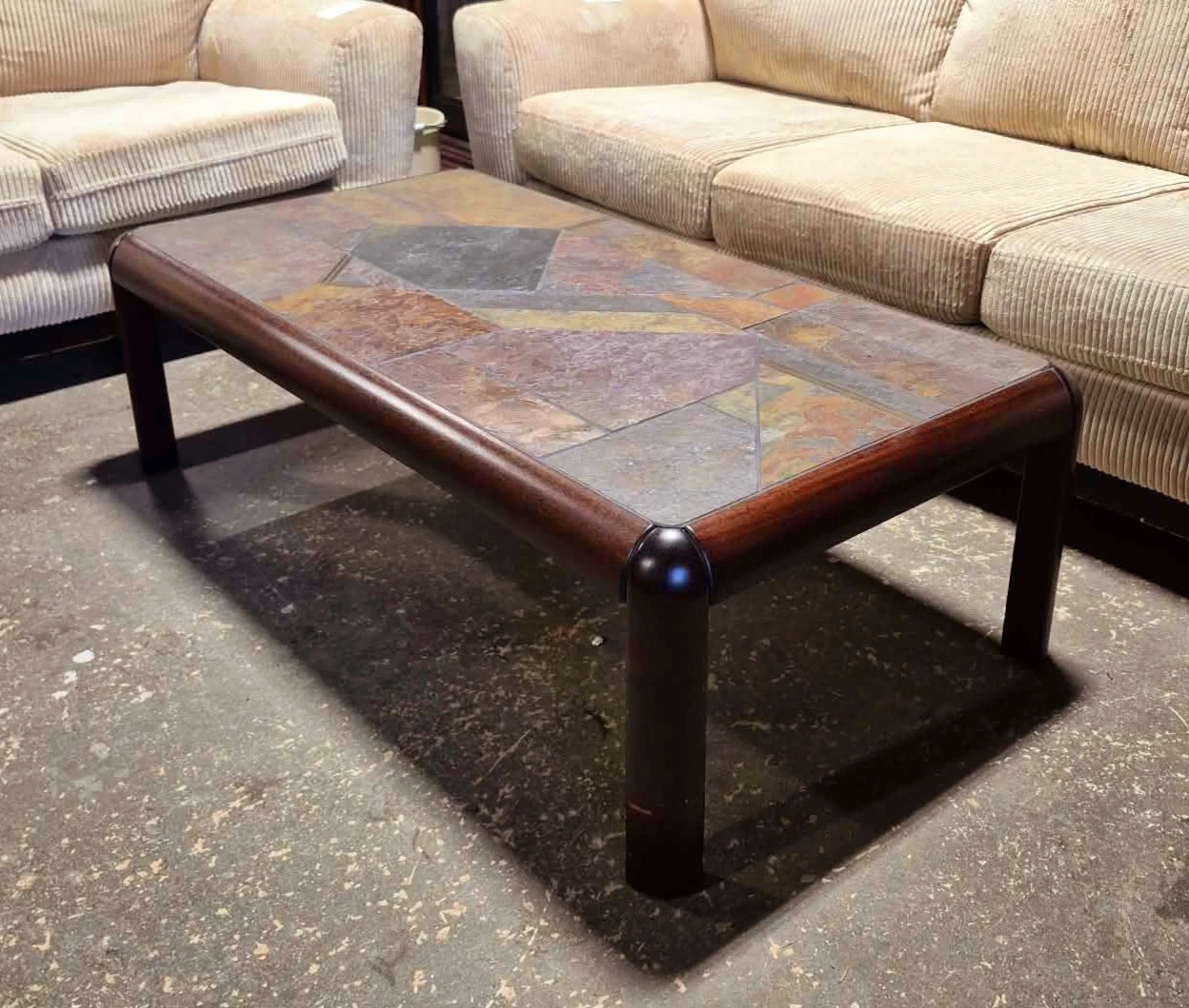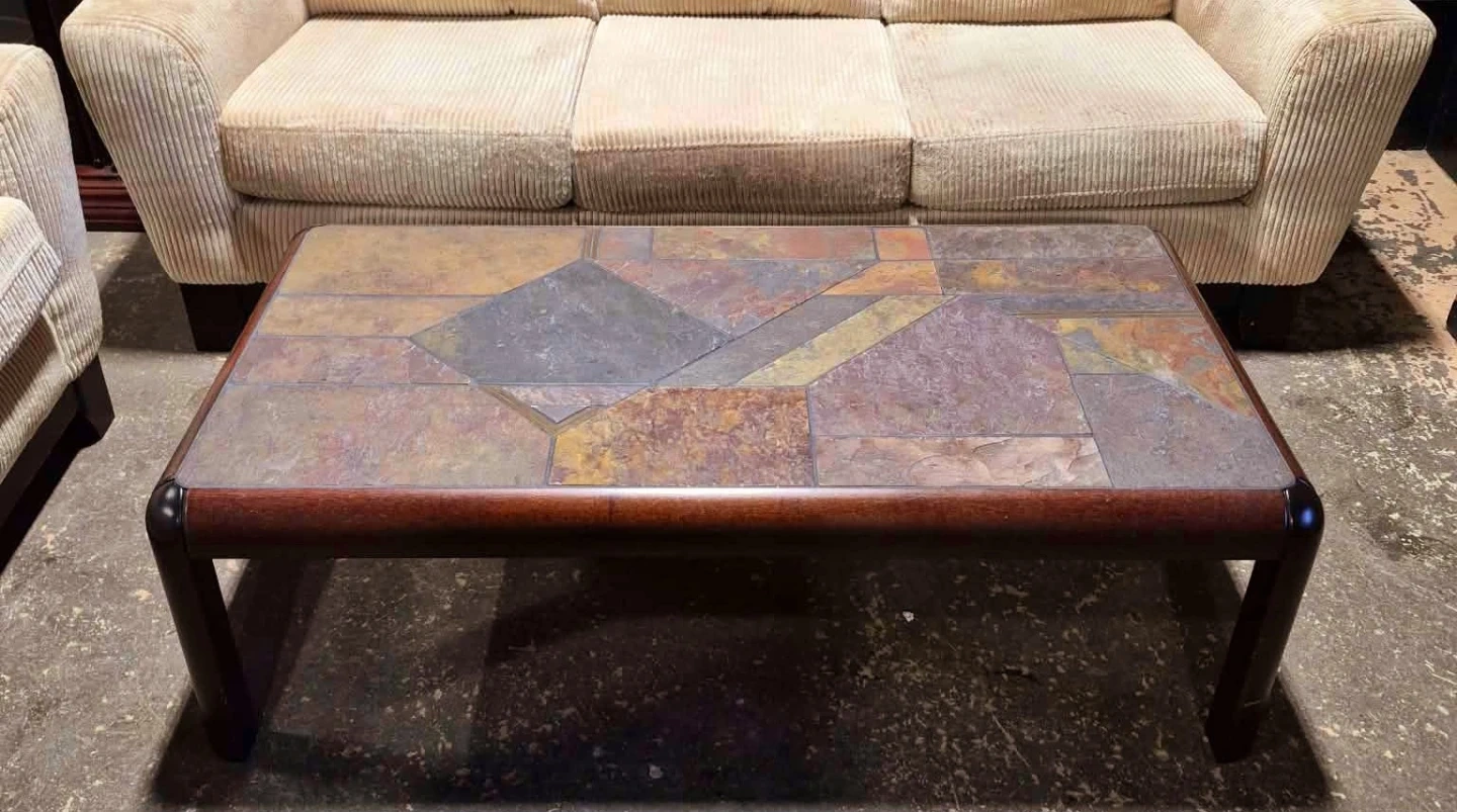 Danish Rosewood Console Table With Slate Tile Top (Delivery Available)