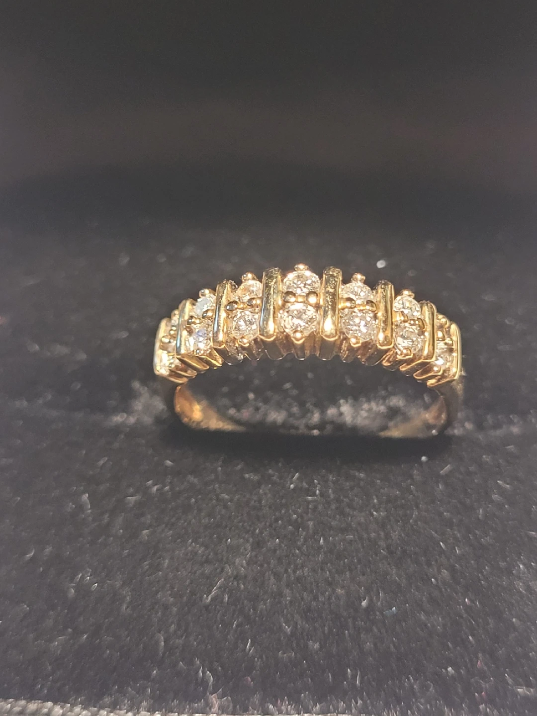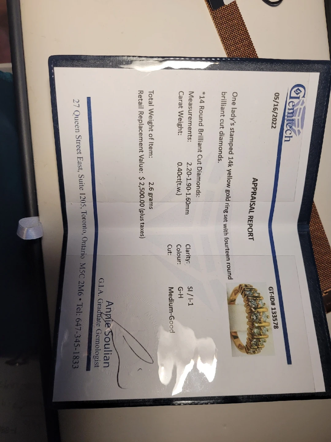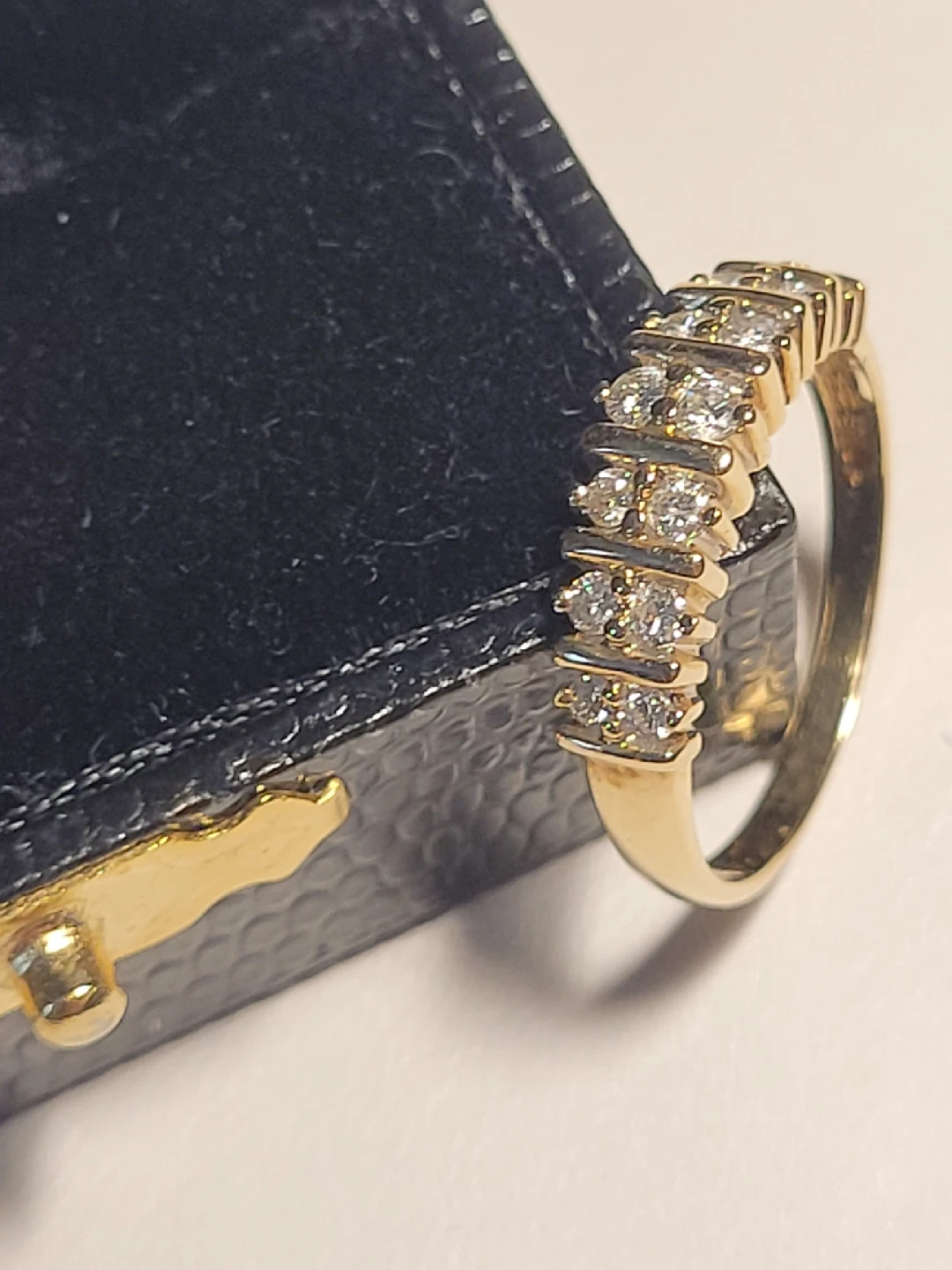 Selling a lovely gold ring with diamonds. It's in great condition and comes with a box! and CERTIFICATE OF VALUE. All the information is detailed there.