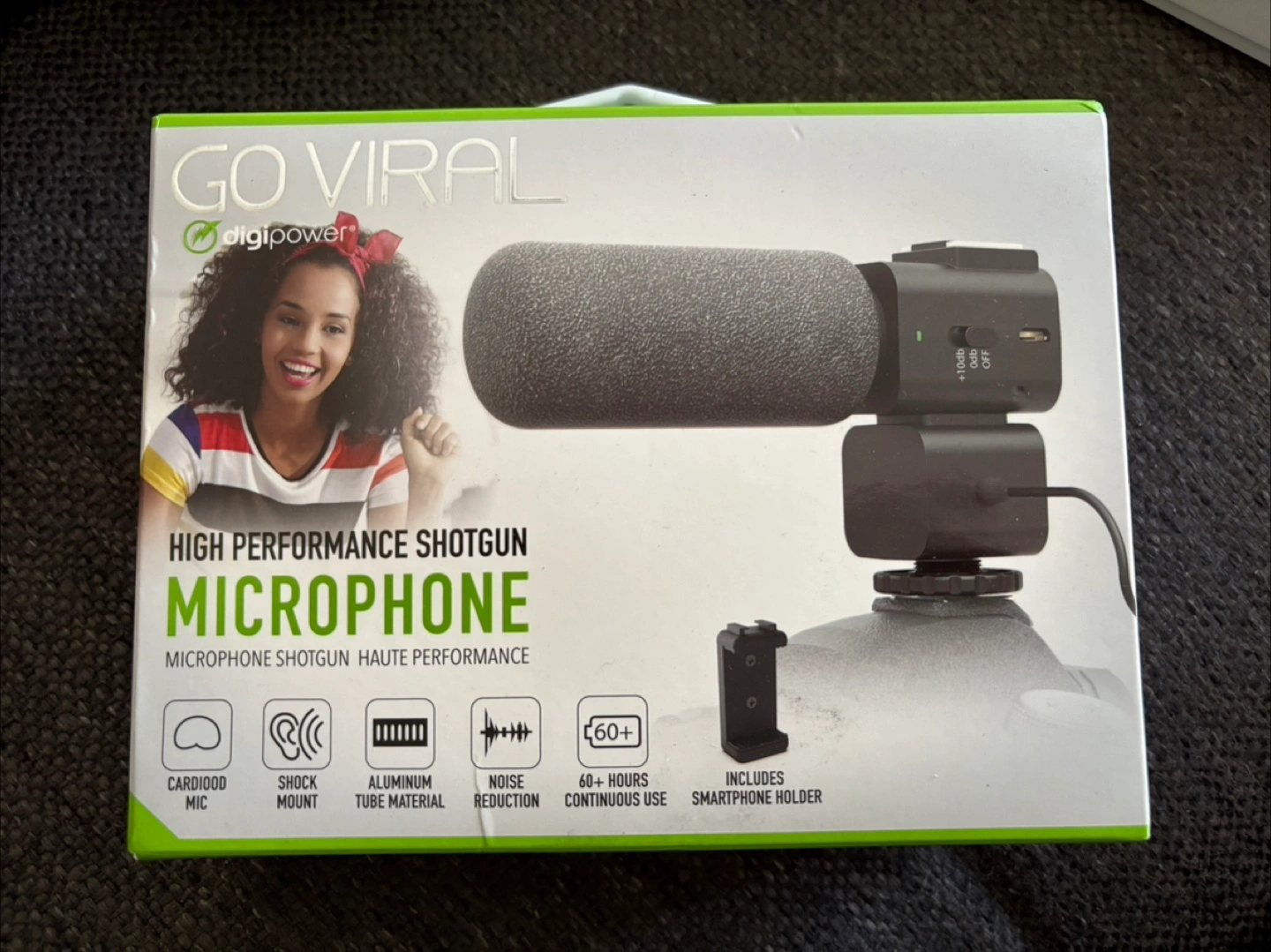 Looking to up your recording game? I'm selling a Go Viral high-performance shotgun microphone. It's in great condition and comes with the box. It features a cardioid mic, shock mount, aluminum tube material, and noise reduction. It also includes a smartphone holder, so you can get started right away!