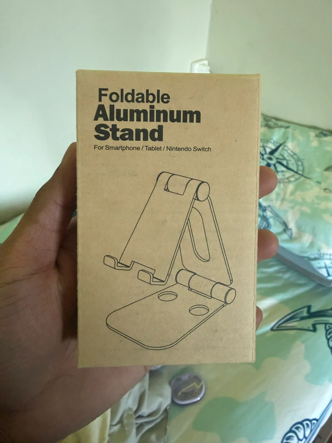 This foldable aluminum stand is perfect for holding your smartphone, tablet, or Nintendo Switch. It's made of durable aluminum and offers a stable base for your devices. It's foldable for easy storage and transport!