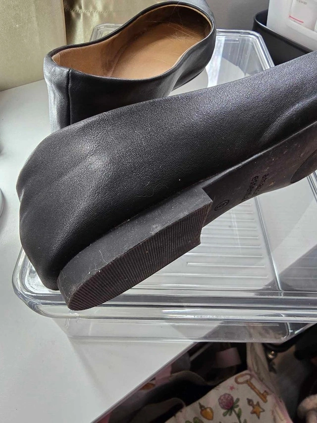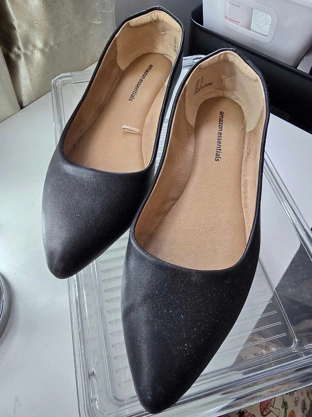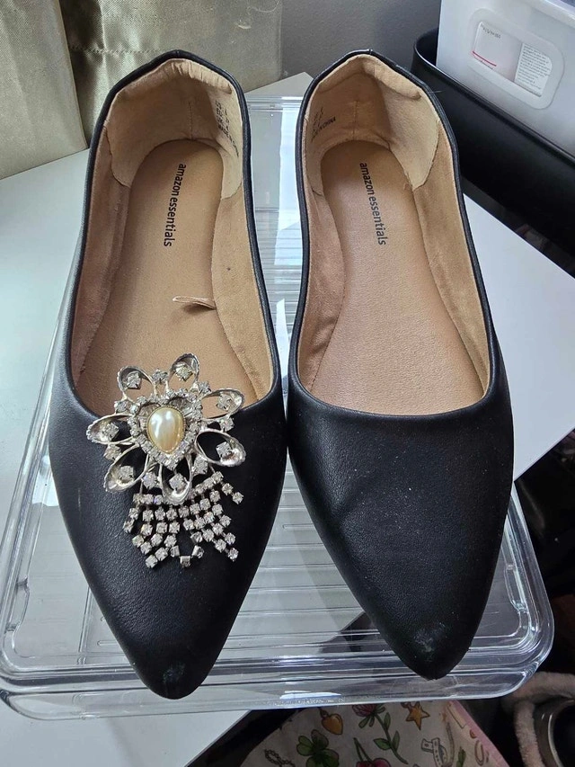 Never worn, except for trying them on indoors to see if they fit. I need a pair of black flats for work in the service industry, so these are an awesome deal at a great price. Size 6. I've added a clip to one shoe to show how easily they can be dressed up for a night out. Pickup near the corner of Grantham Ave and Carlton Street. From a very clean, smoke-free home. Please take a peek at my other ads, thank you!