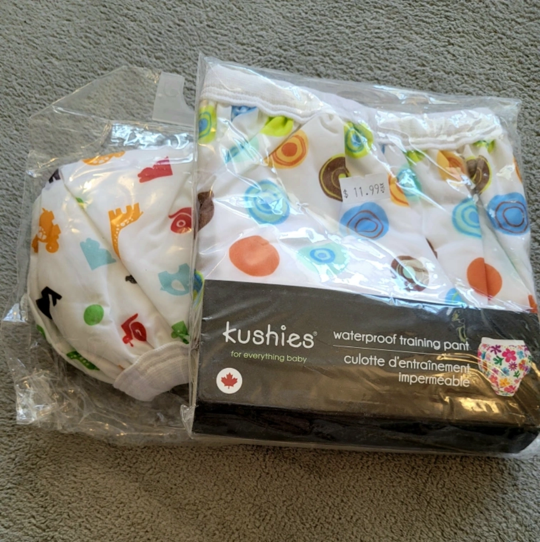 New, unused Kushies waterproof training pants. Multiple prints available. See photos for details.