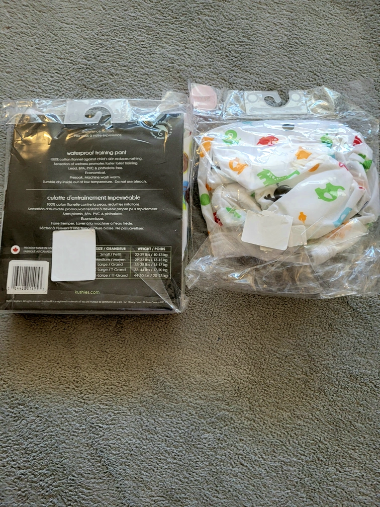 New, unused Kushies waterproof training pants. Multiple prints available. See photos for details.