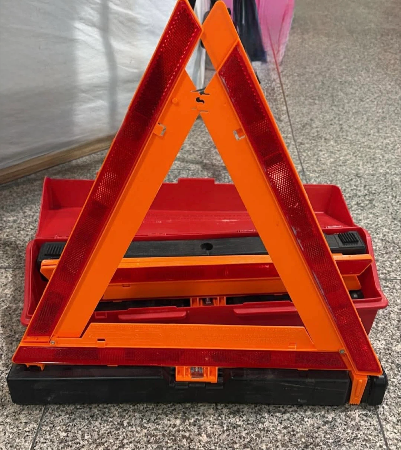 It contains 3 triangles and comes in a red case. Great for roadside safety!