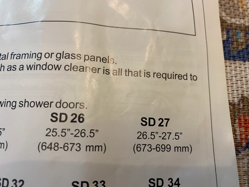 The door width is adjustable width 25-26 inches or 26-27 inches.