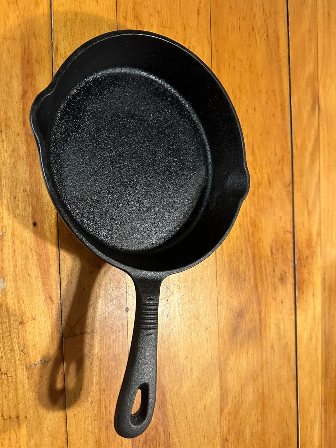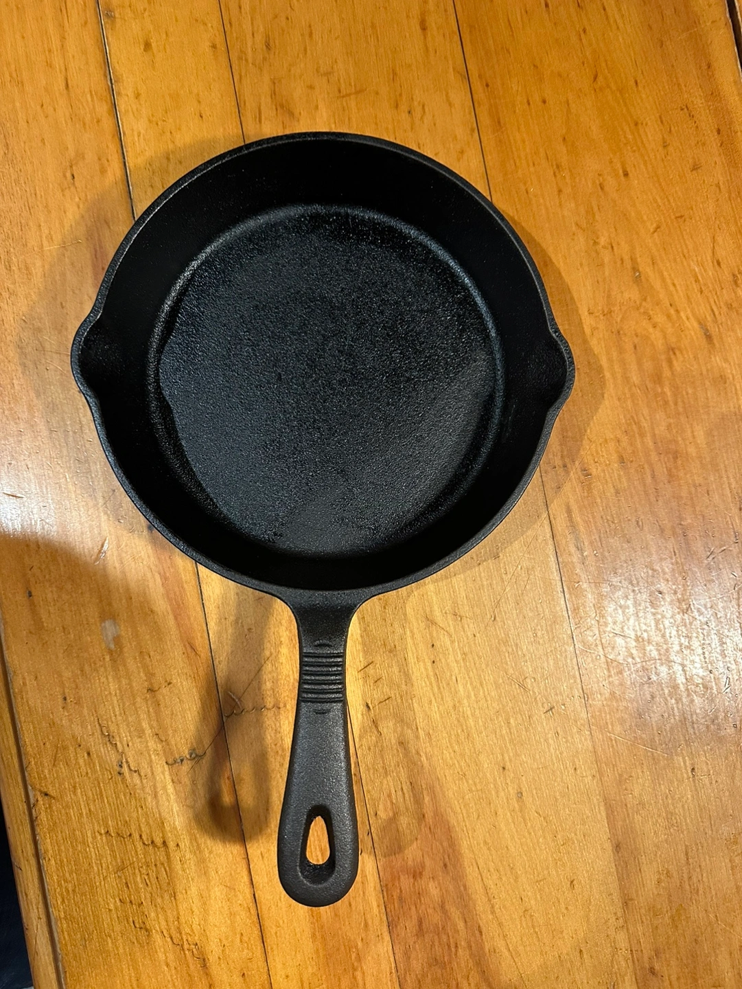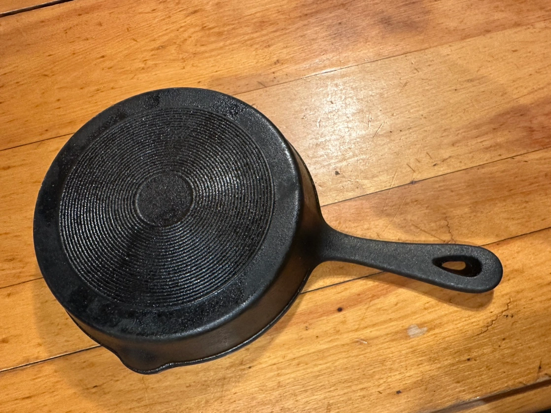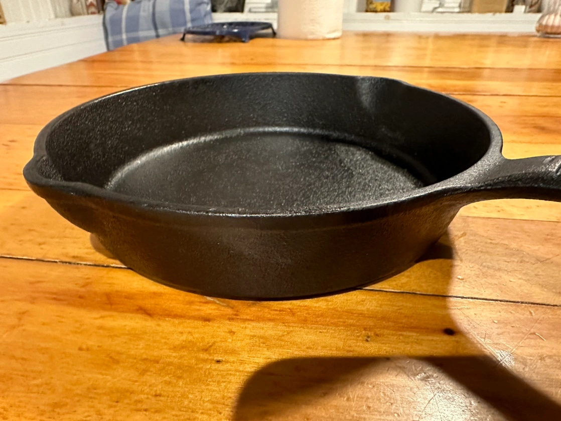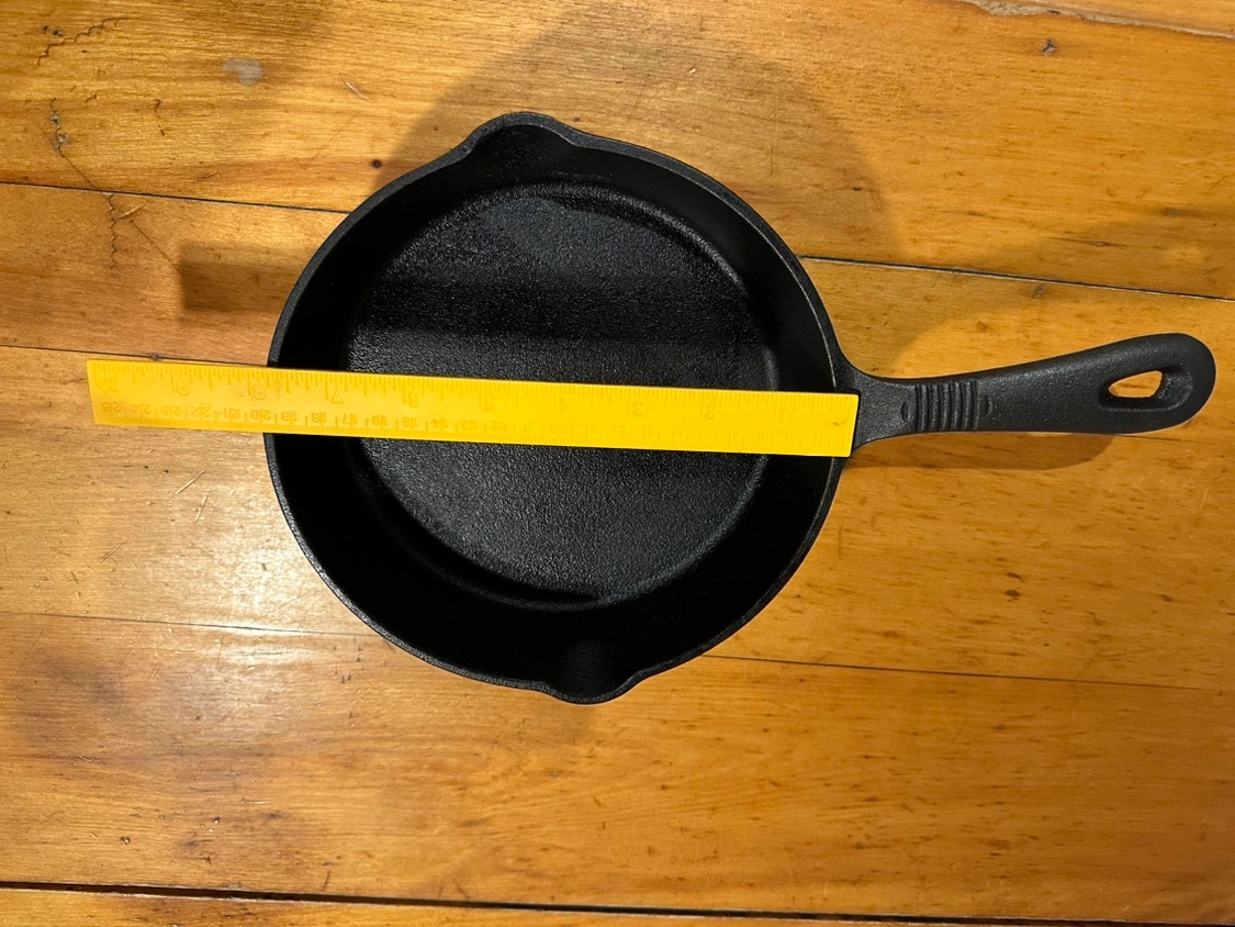 The skillet is in better-than-new condition, as we have been using it pretty regularly for a year, and have been able to establish a good seasoning. Our eldest bought it new when he went away for a work term last year.