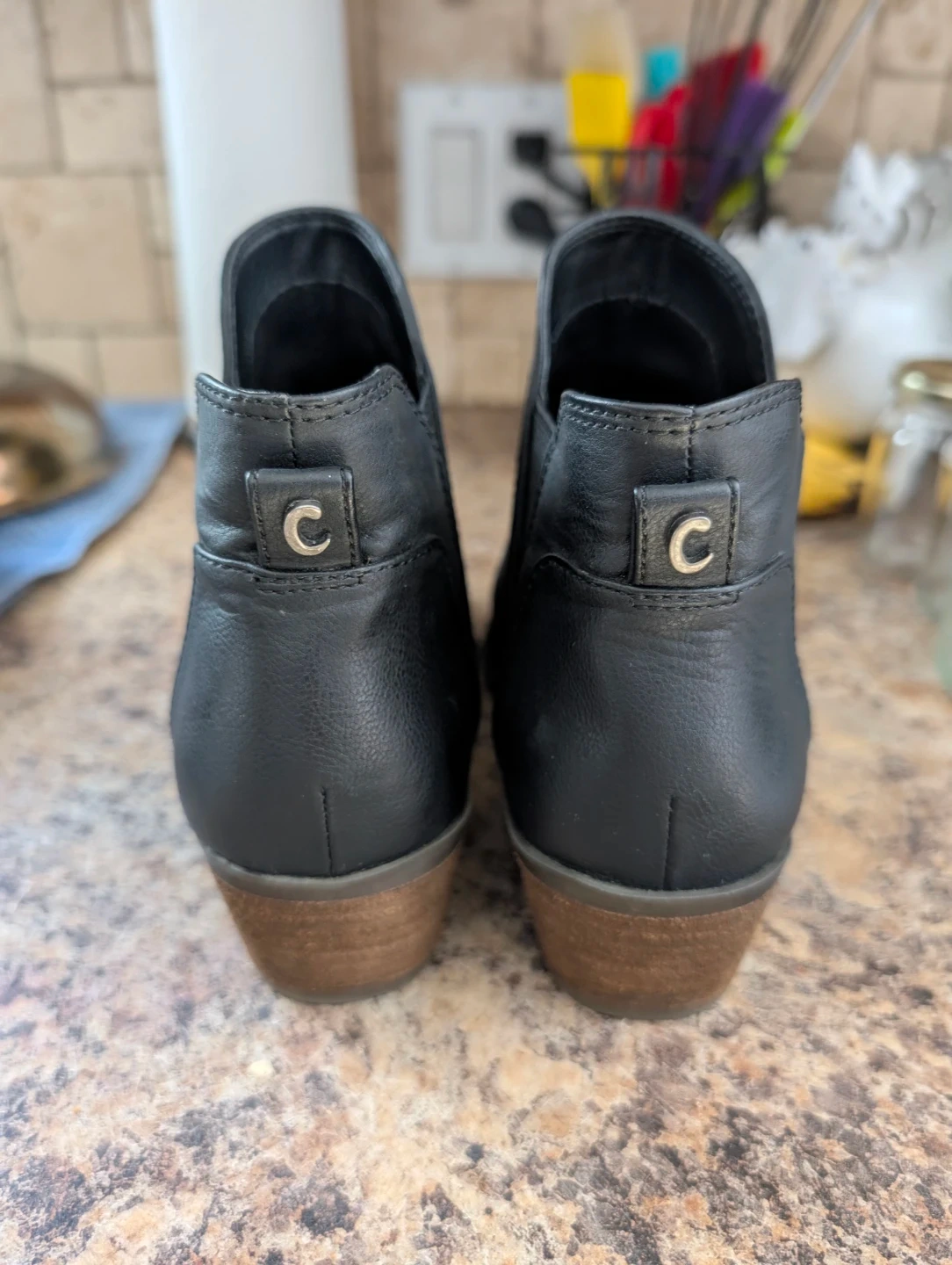 These black ankle boots from Circus by Sam Edelman are a stylish choice for any outfit. They feature a Chelsea boot design with elastic side panels. The faux leather material and wooden block heel offer a classic look. Size is 6.