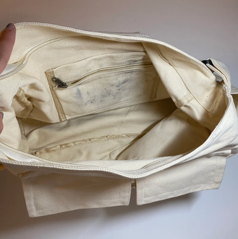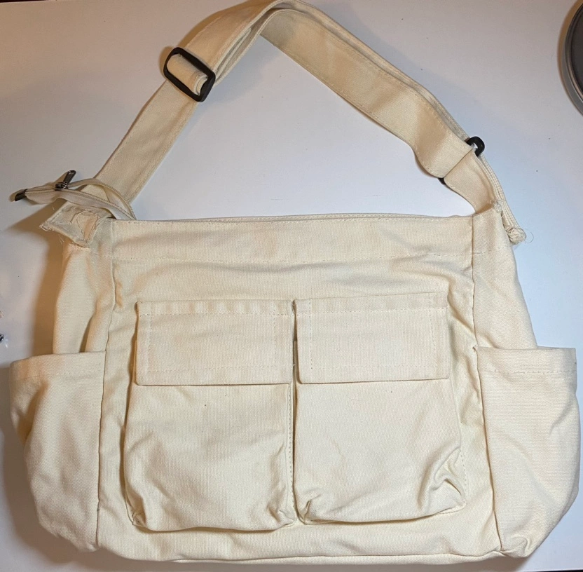 * used beige canvas messenger bag. Still usable but I've since gotten other bags so selling this one!