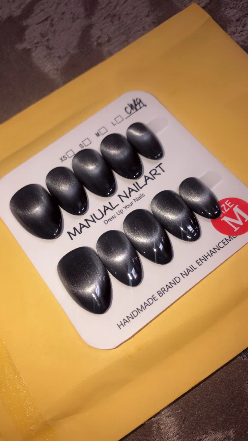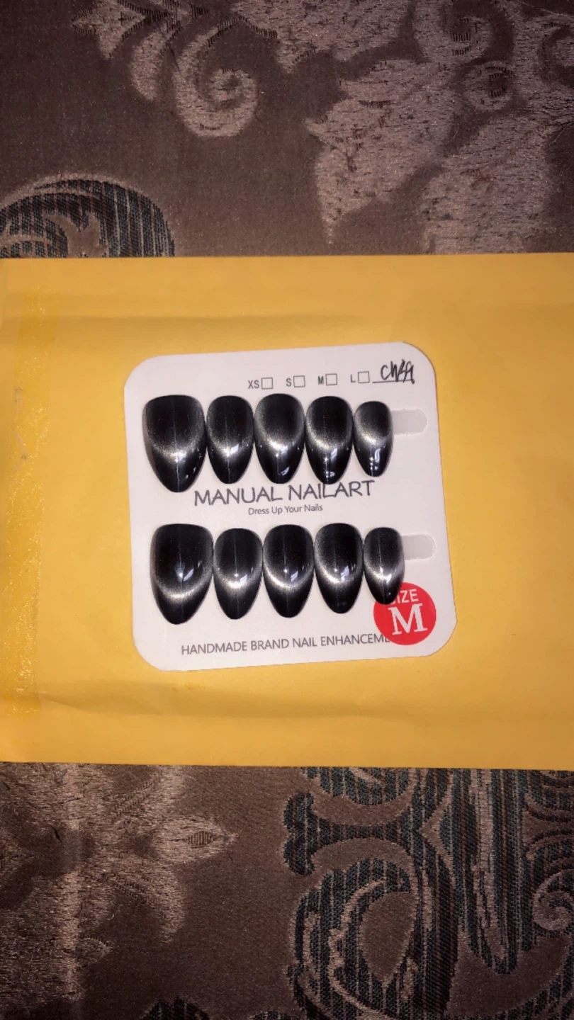 Get a stylish manicure with this set of Manual Nail Art press-on nails. They're a size medium and feature a cool cat eye design. These handmade