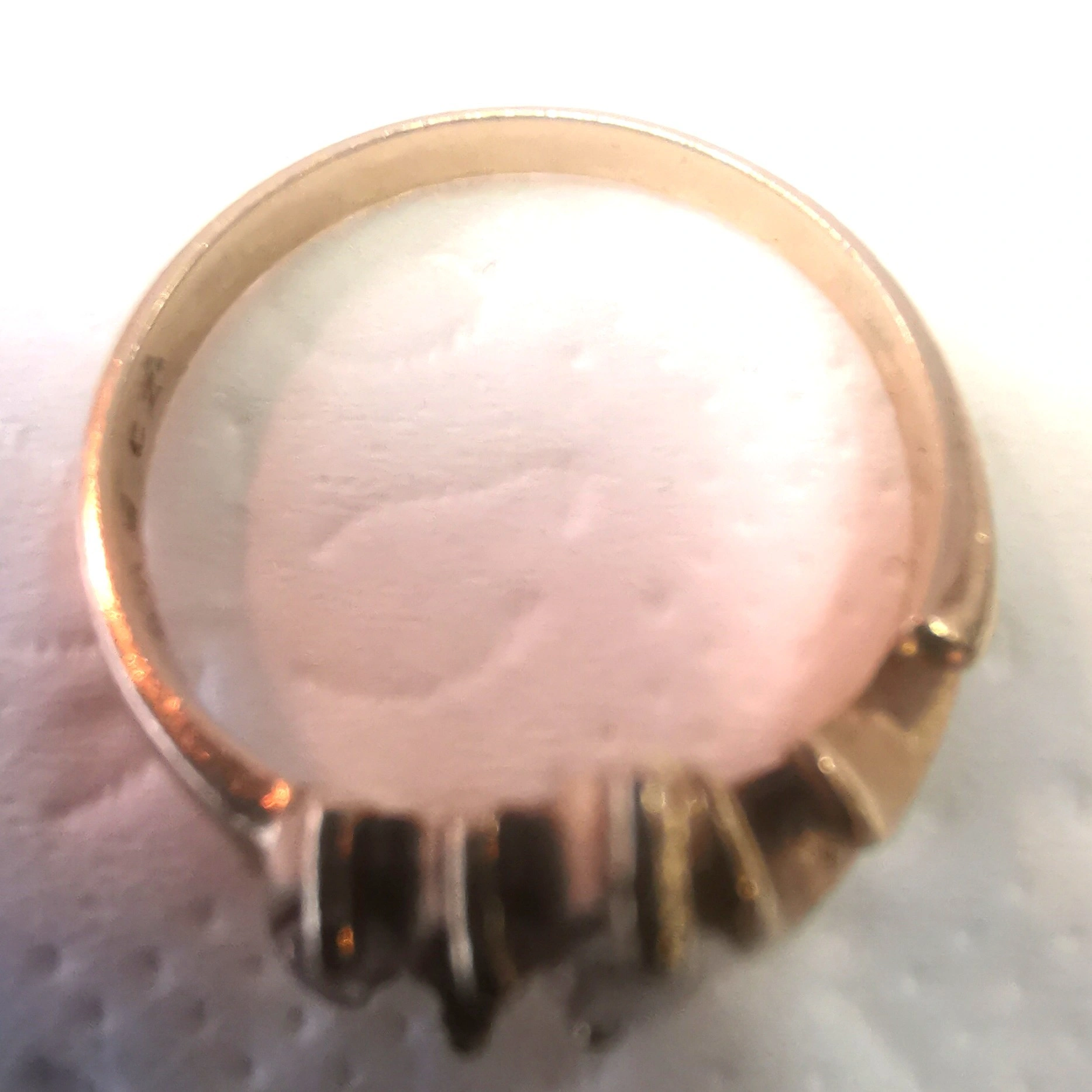 NOTE: FINAL PICTURE WITH THE RING DEPICTED WITH THREE STONES IS TO SHOW HOW RING WOULD LOOK REPAIRED.
