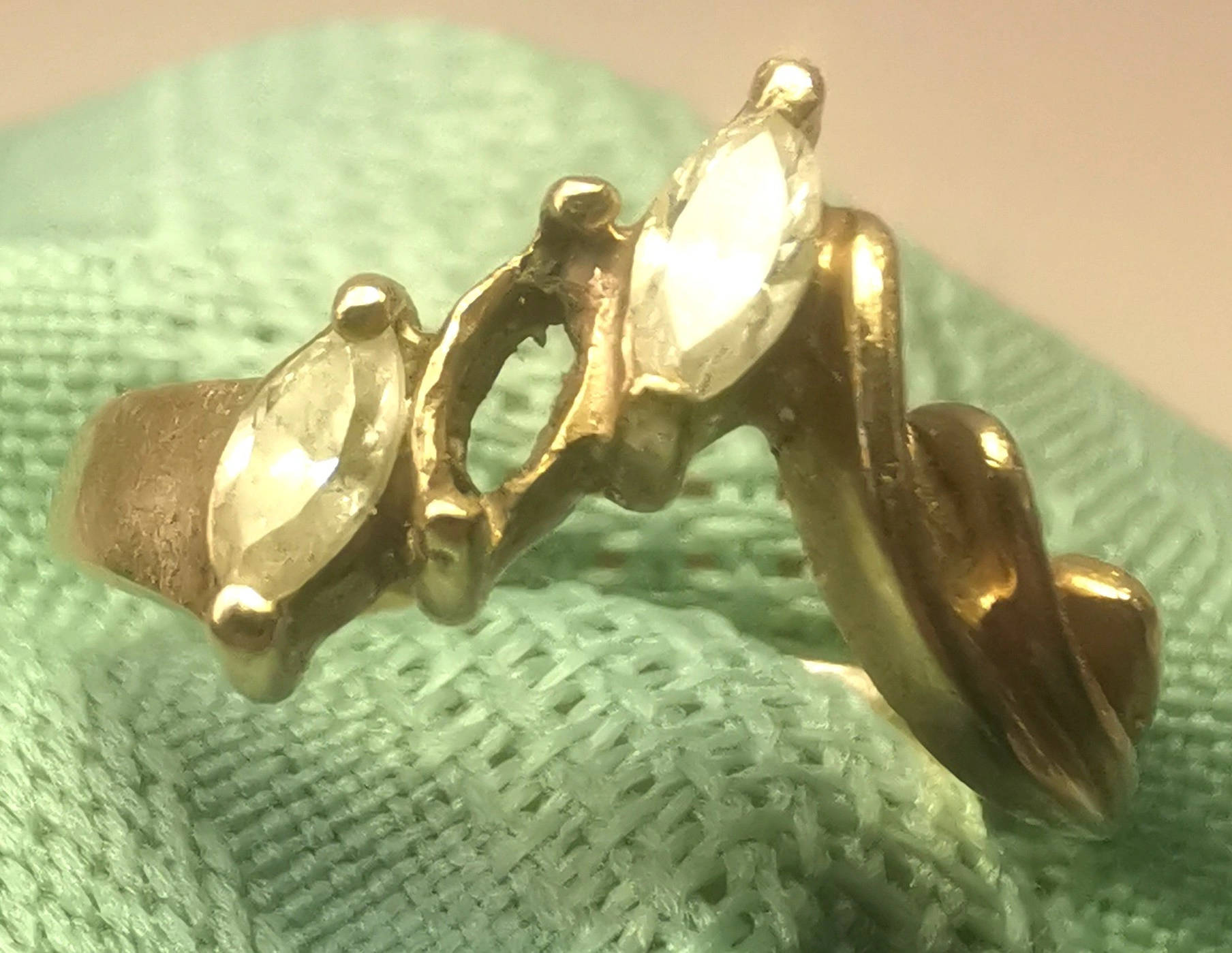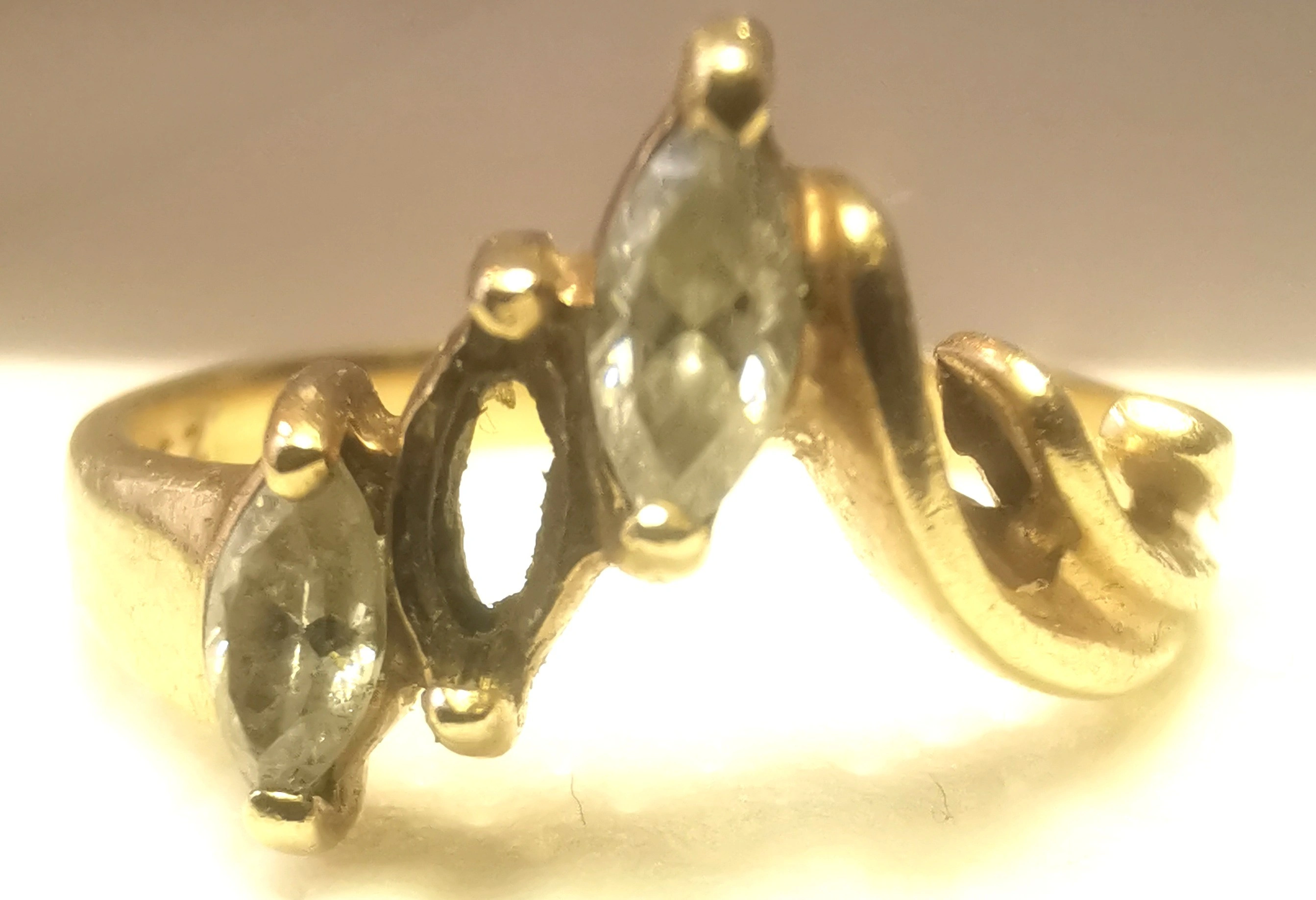 10K Gold Marquise cz Bypass Ring Size 6.5 (3g) 1 MISSING STONE
