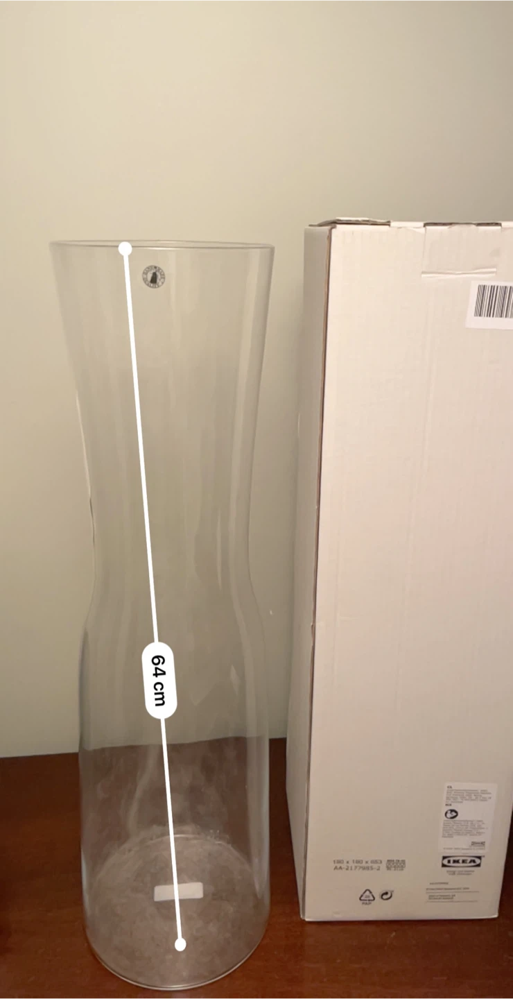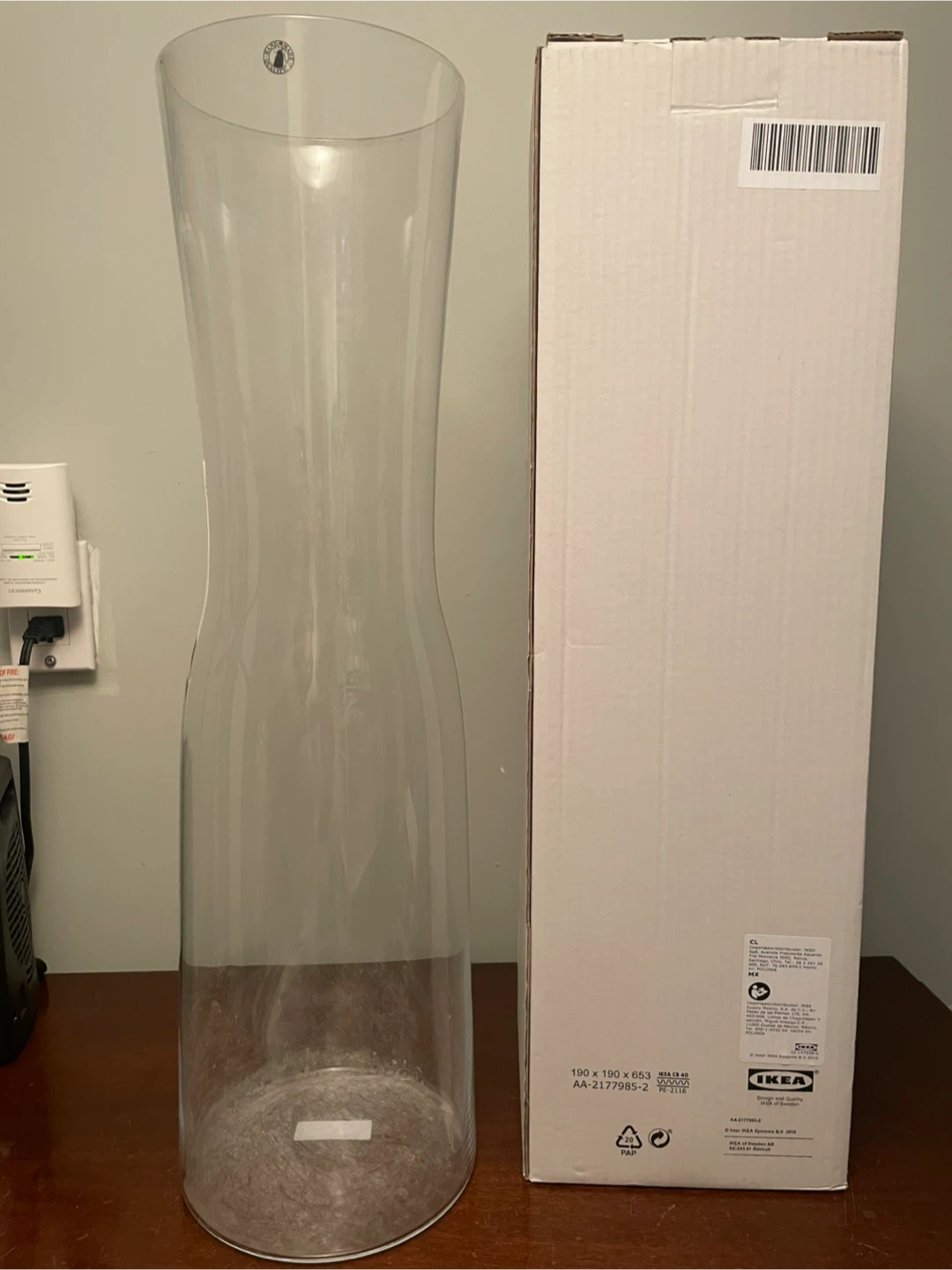 These 2 IKEA TIDVATTEN vases designed by Ingergerd Råman. It's made of glass and stands 65 cm tall. It's a tall, narrow vase that would make for a great statement piece! Used once for a wedding. Willing to compromise on price!